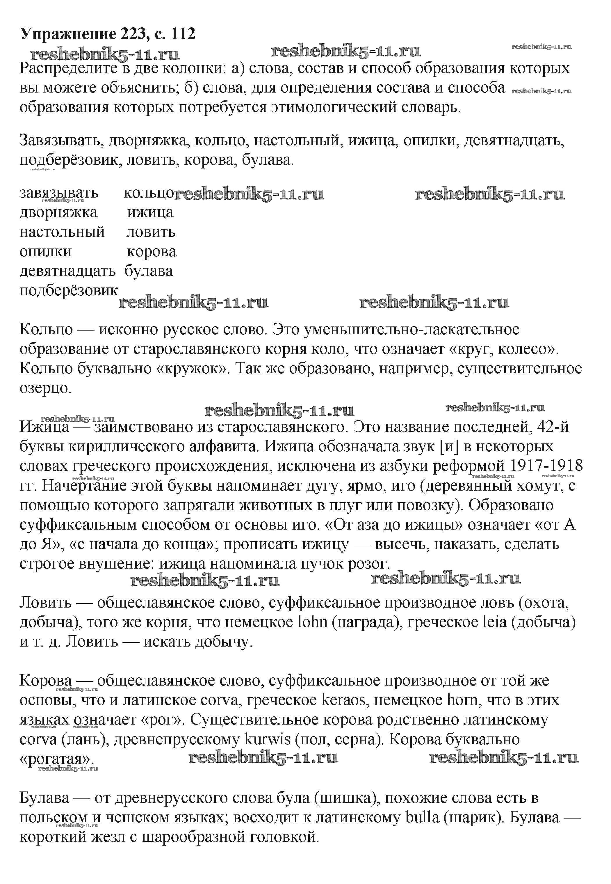 Русский язык за 6 класс Баранов Учебник Просвещение упражнение 223