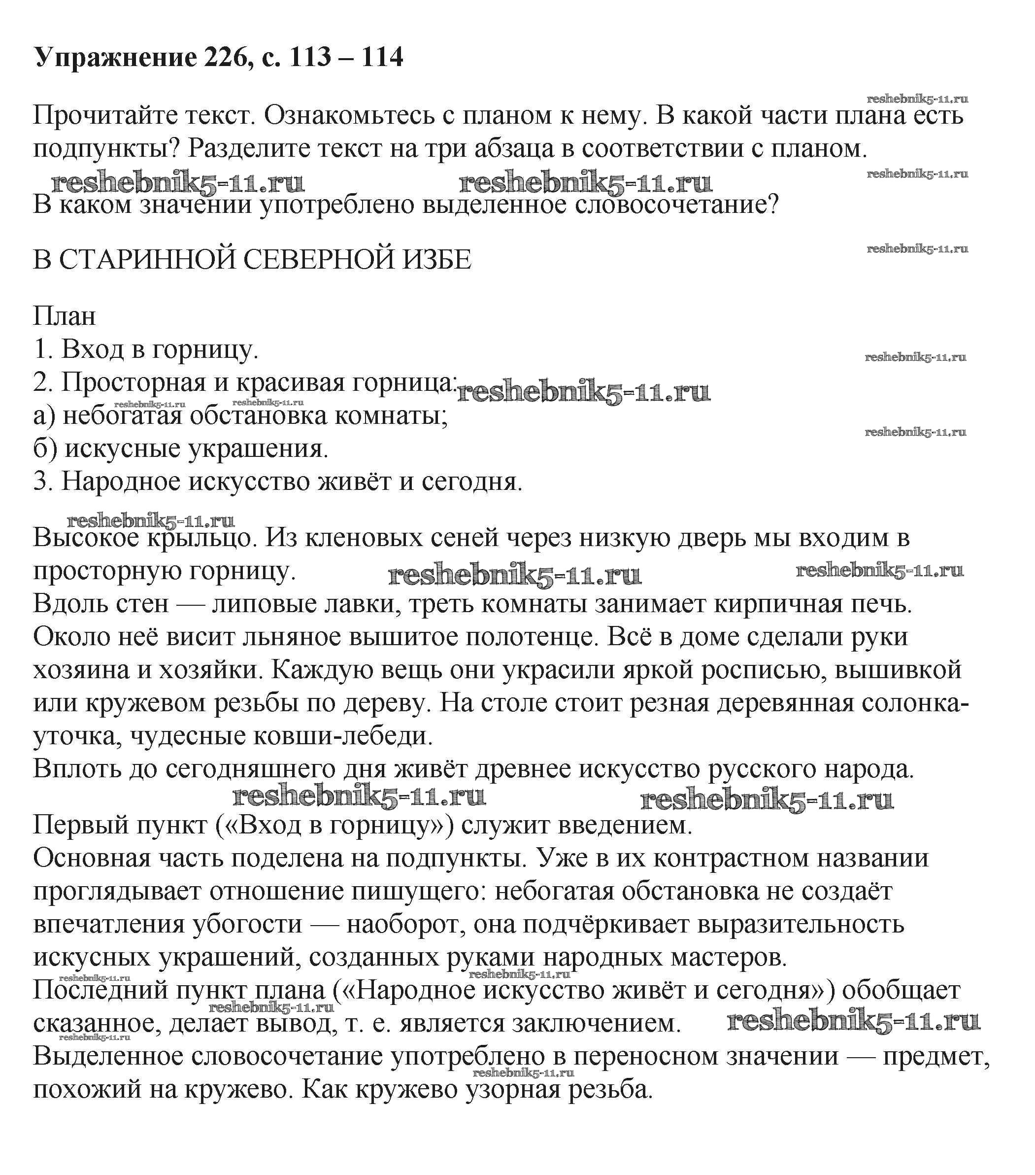 Готовая домашняя работа с ответами по Русскому языку за 6 класс Баранов, Ладыженская, Тростенцова, Григорян, Кулибаба Учебник Часть 1, 2 Просвещение 2015 ФГОС - Упражнения 226