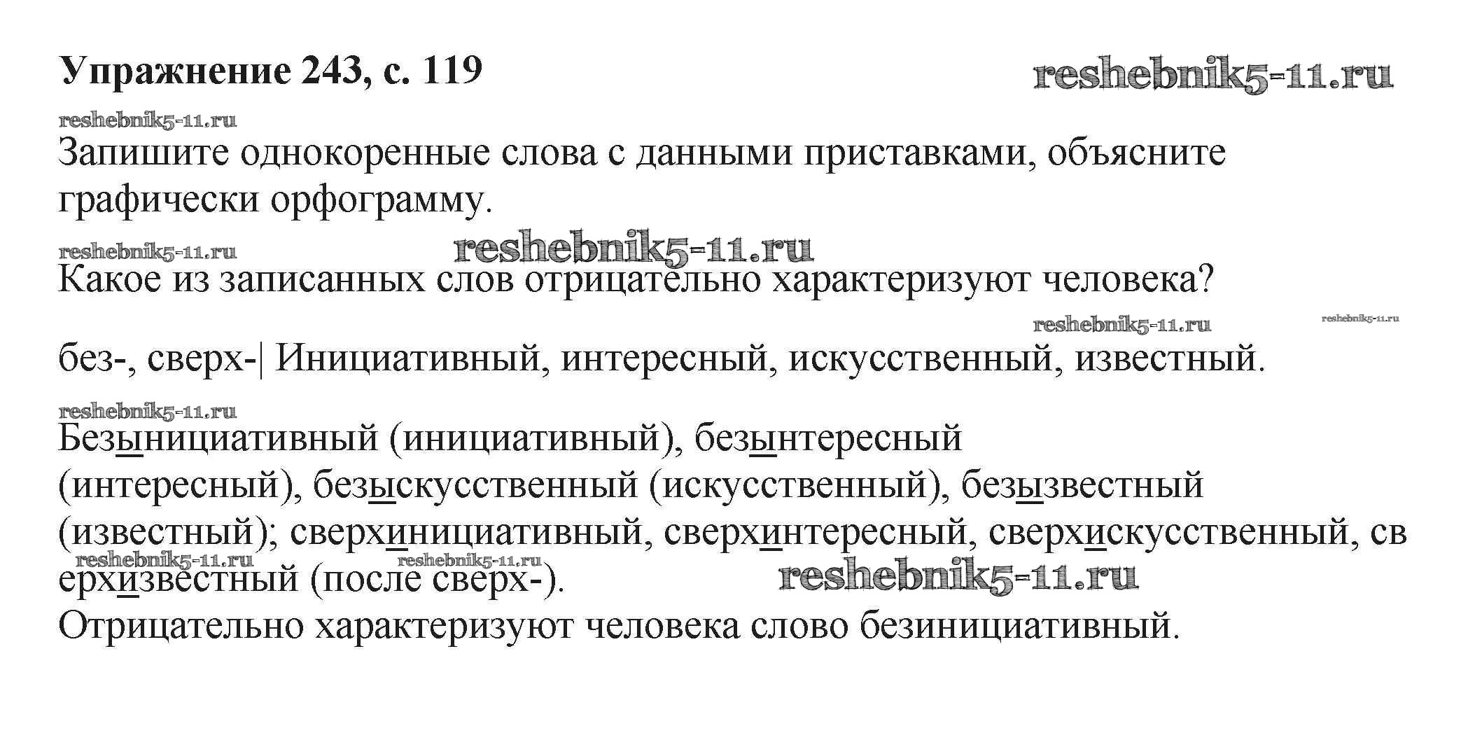 Готовая домашняя работа с ответами по Русскому языку за 6 класс Баранов, Ладыженская, Тростенцова, Григорян, Кулибаба Учебник Часть 1, 2 Просвещение 2015 ФГОС - Упражнения 243