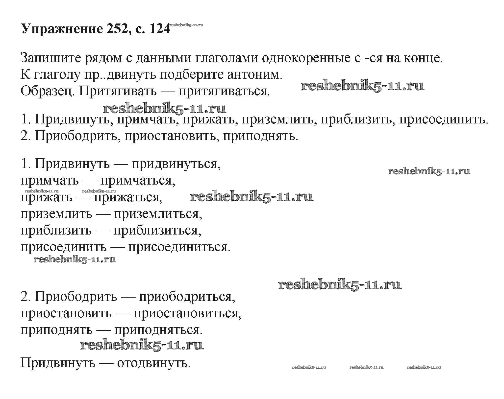 Готовая домашняя работа с ответами по Русскому языку за 6 класс Баранов, Ладыженская, Тростенцова, Григорян, Кулибаба Учебник Часть 1, 2 Просвещение 2015 ФГОС - Упражнения 252