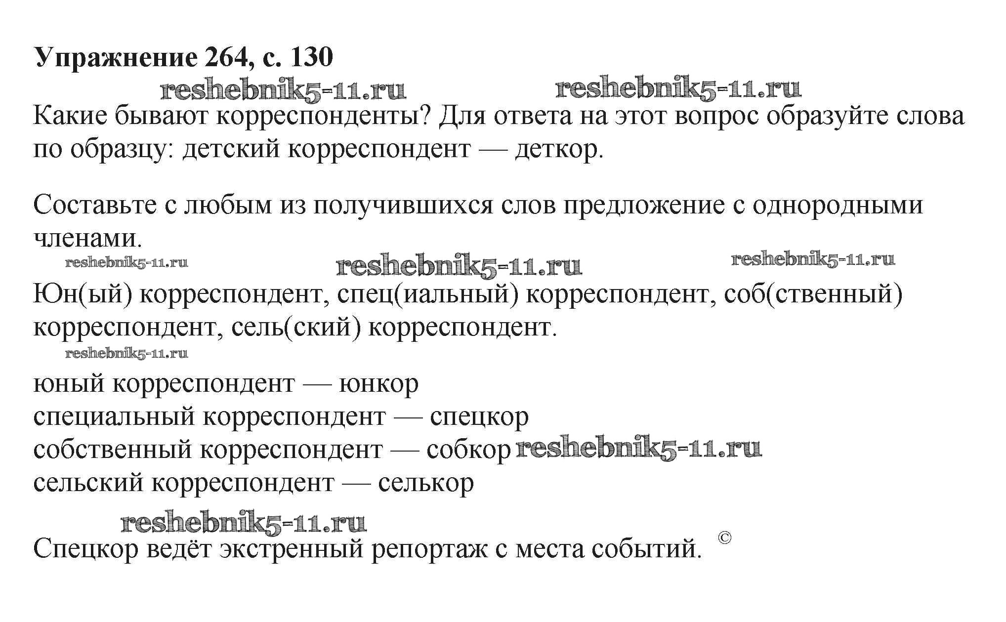 Готовая домашняя работа с ответами по Русскому языку за 6 класс Баранов, Ладыженская, Тростенцова, Григорян, Кулибаба Учебник Часть 1, 2 Просвещение 2015 ФГОС - Упражнения 264