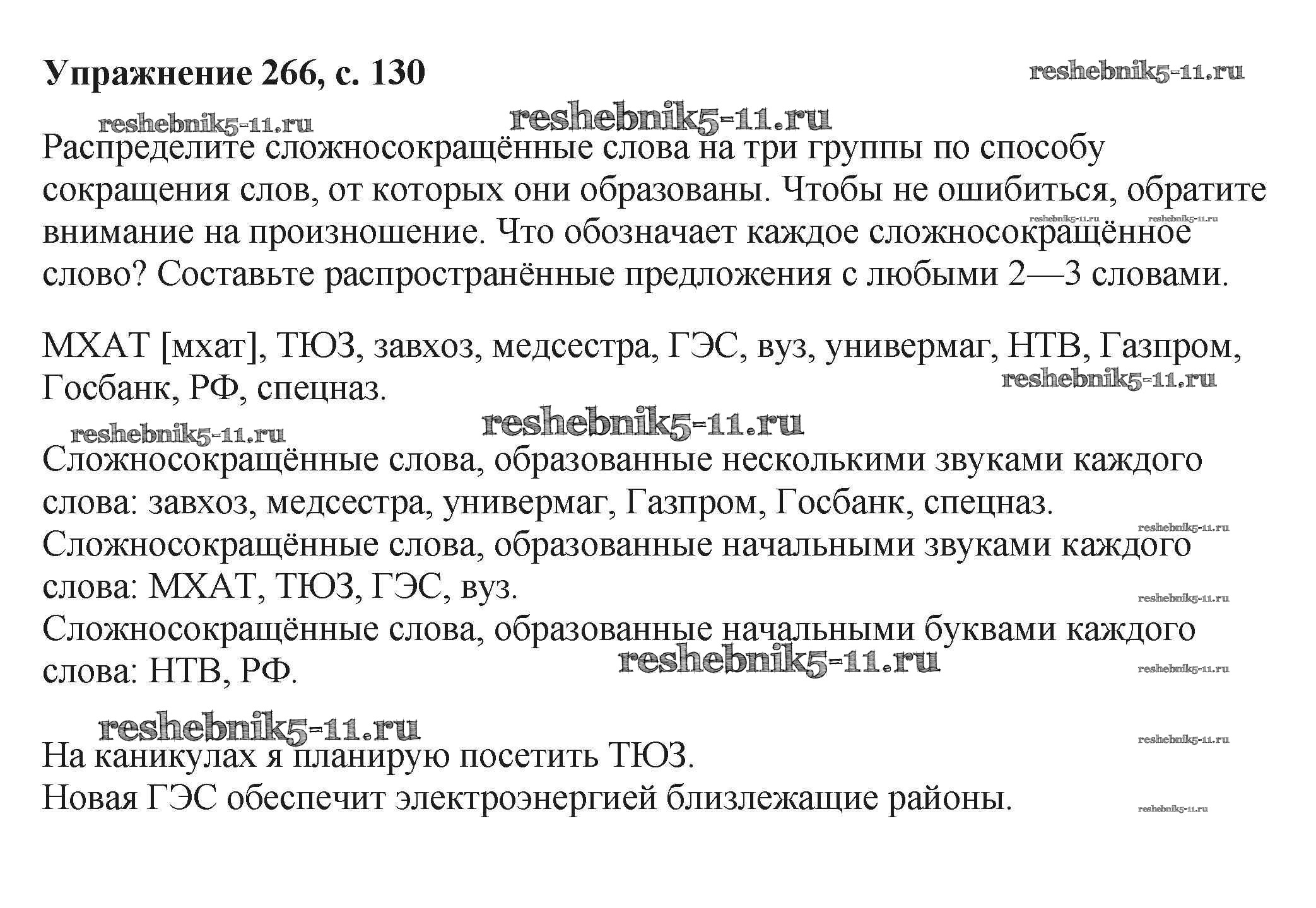 Готовая домашняя работа с ответами по Русскому языку за 6 класс Баранов, Ладыженская, Тростенцова, Григорян, Кулибаба Учебник Часть 1, 2 Просвещение 2015 ФГОС - Упражнения 266