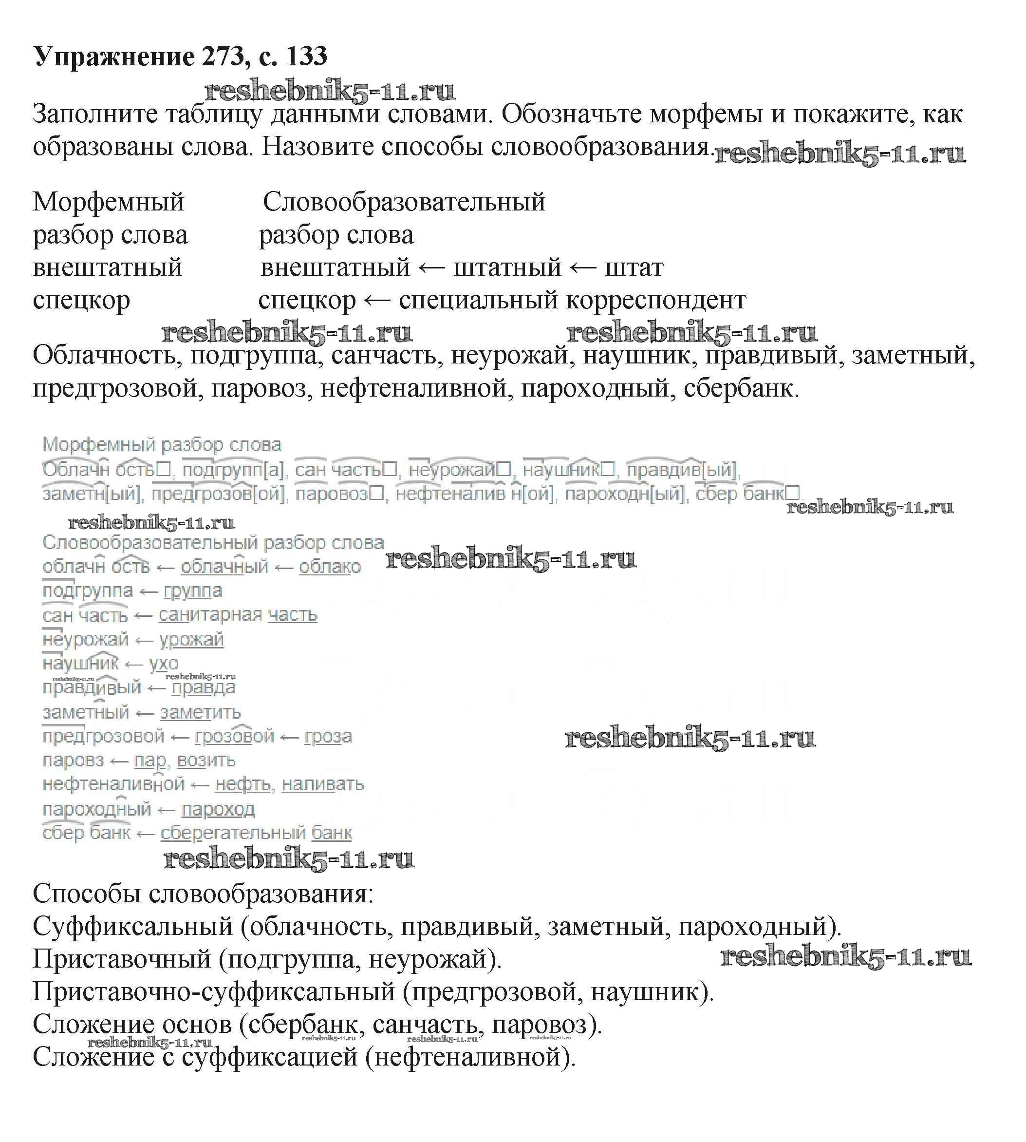 Готовая домашняя работа с ответами по Русскому языку за 6 класс Баранов, Ладыженская, Тростенцова, Григорян, Кулибаба Учебник Часть 1, 2 Просвещение 2015 ФГОС - Упражнения 273