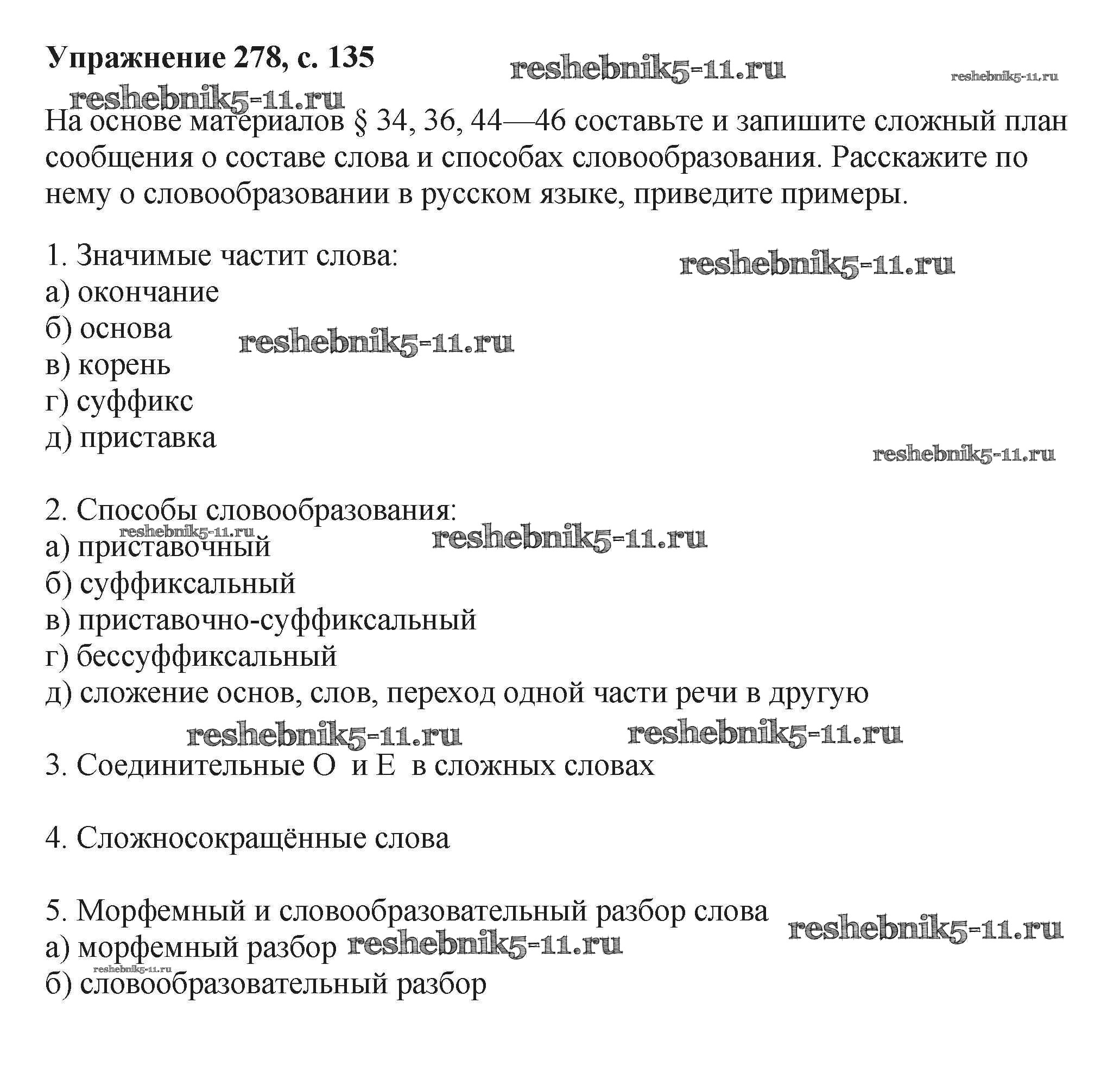 Готовая домашняя работа с ответами по Русскому языку за 6 класс Баранов, Ладыженская, Тростенцова, Григорян, Кулибаба Учебник Часть 1, 2 Просвещение 2015 ФГОС - Упражнения 278