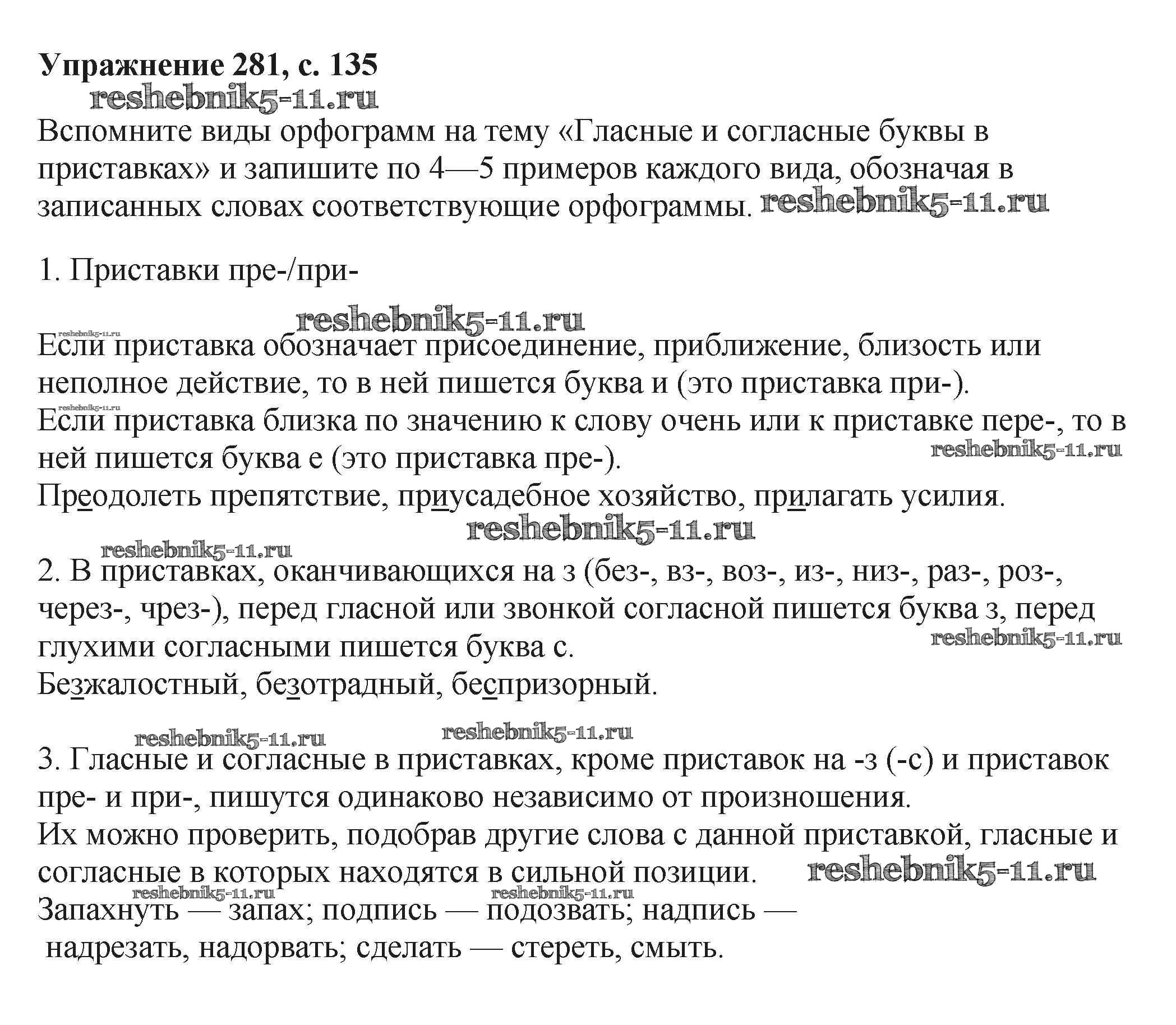 Готовая домашняя работа с ответами по Русскому языку за 6 класс Баранов, Ладыженская, Тростенцова, Григорян, Кулибаба Учебник Часть 1, 2 Просвещение 2015 ФГОС - Упражнения 281