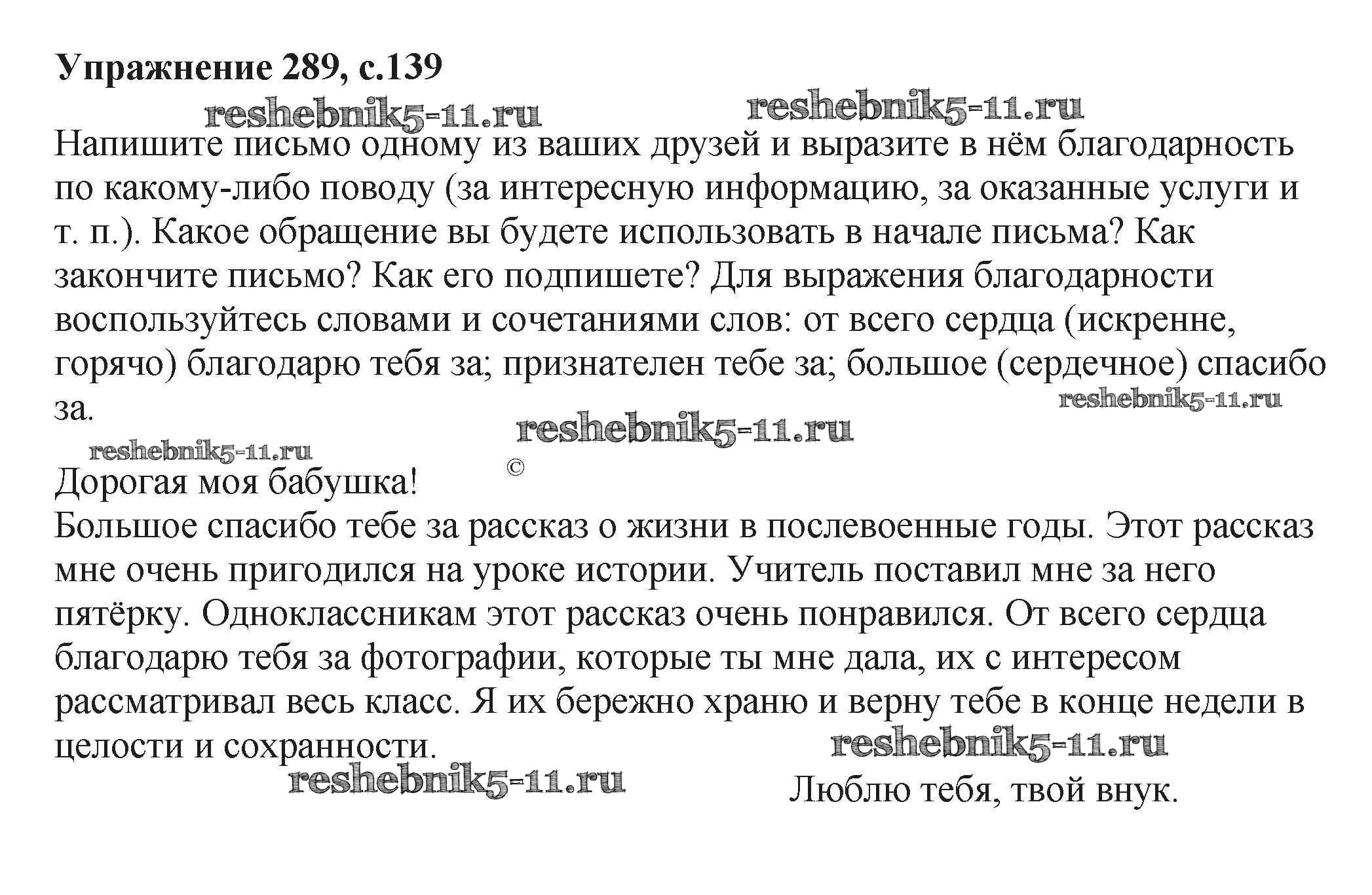 Готовая домашняя работа с ответами по Русскому языку за 6 класс Баранов, Ладыженская, Тростенцова, Григорян, Кулибаба Учебник Часть 1, 2 Просвещение 2015 ФГОС - Упражнения 289