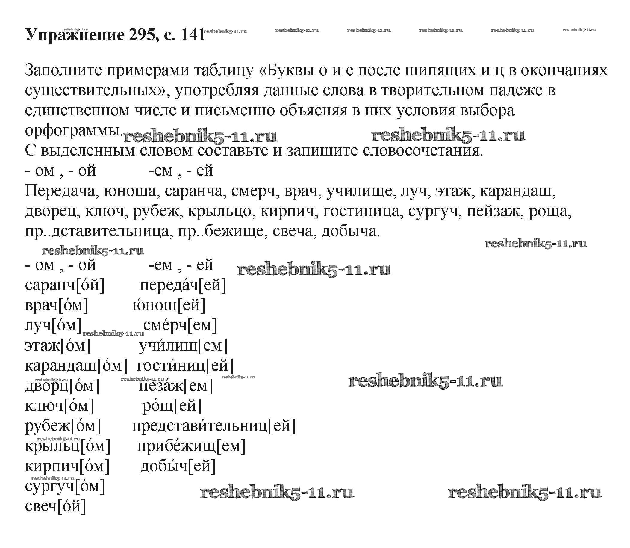 Готовая домашняя работа с ответами по Русскому языку за 6 класс Баранов, Ладыженская, Тростенцова, Григорян, Кулибаба Учебник Часть 1, 2 Просвещение 2015 ФГОС - Упражнения 295