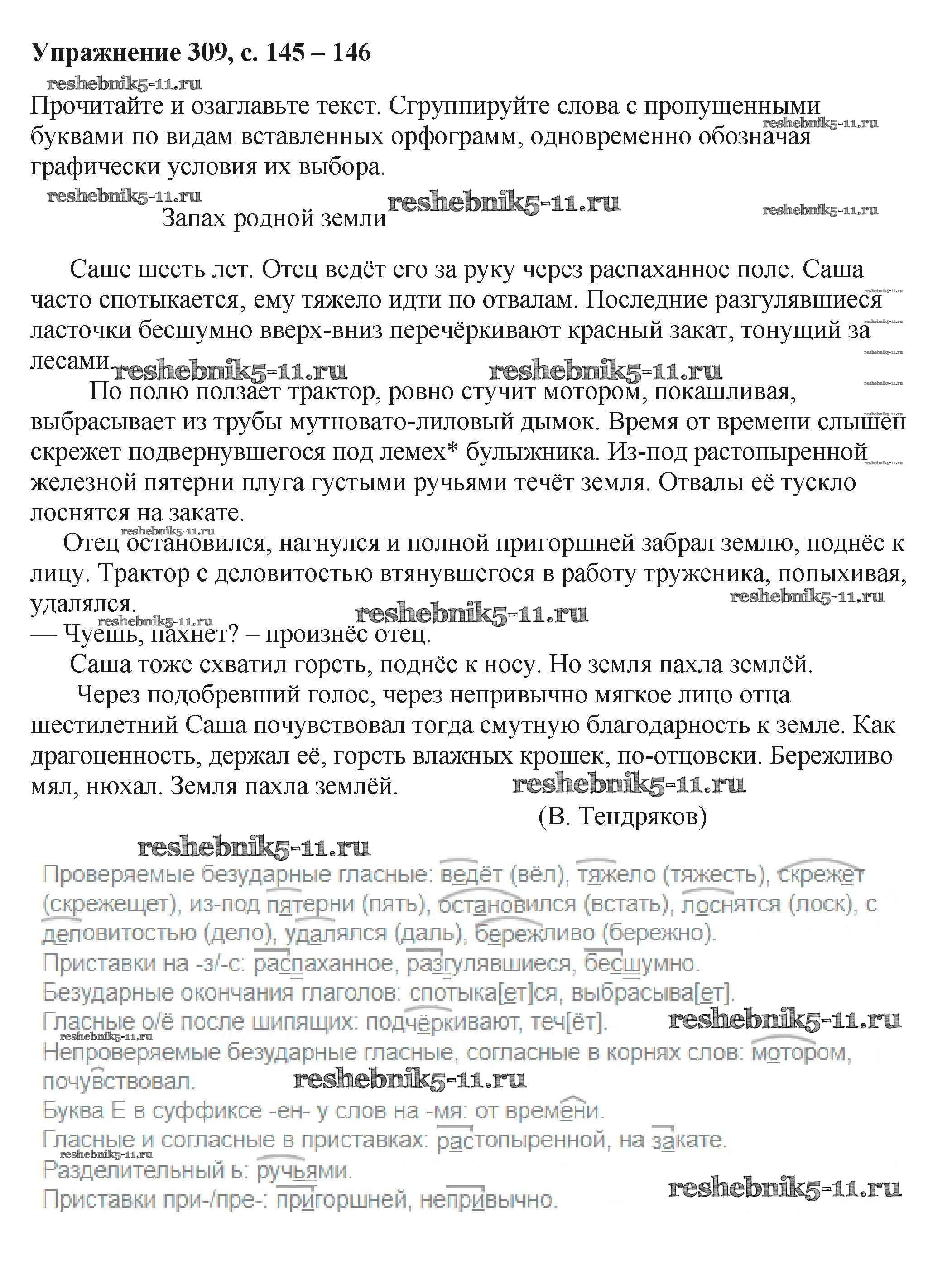 Готовая домашняя работа с ответами по Русскому языку за 6 класс Баранов, Ладыженская, Тростенцова, Григорян, Кулибаба Учебник Часть 1, 2 Просвещение 2015 ФГОС - Упражнения 309