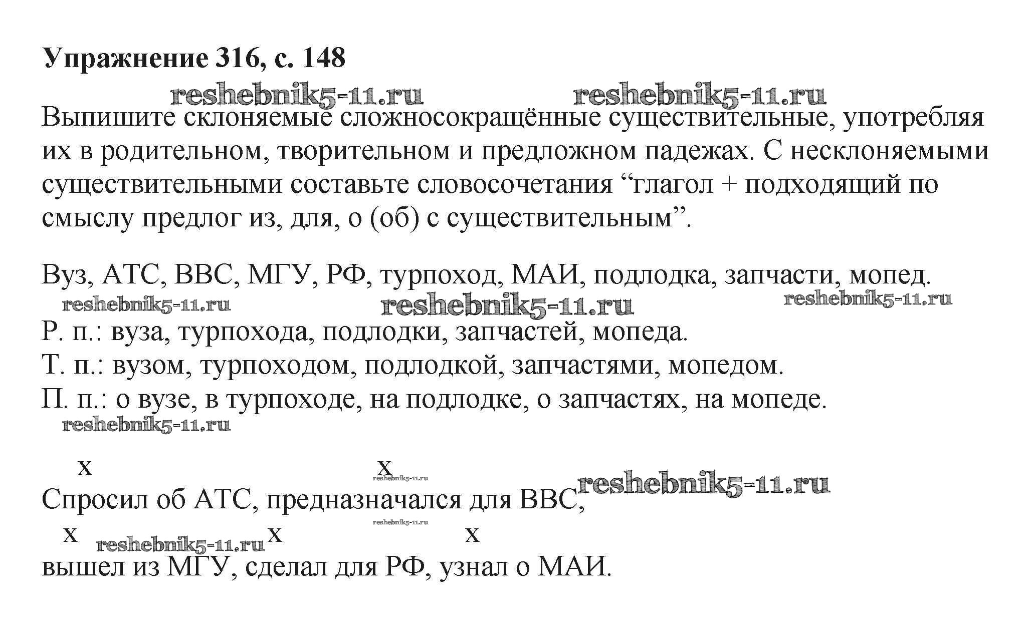Готовая домашняя работа с ответами по Русскому языку за 6 класс Баранов, Ладыженская, Тростенцова, Григорян, Кулибаба Учебник Часть 1, 2 Просвещение 2015 ФГОС - Упражнения 316