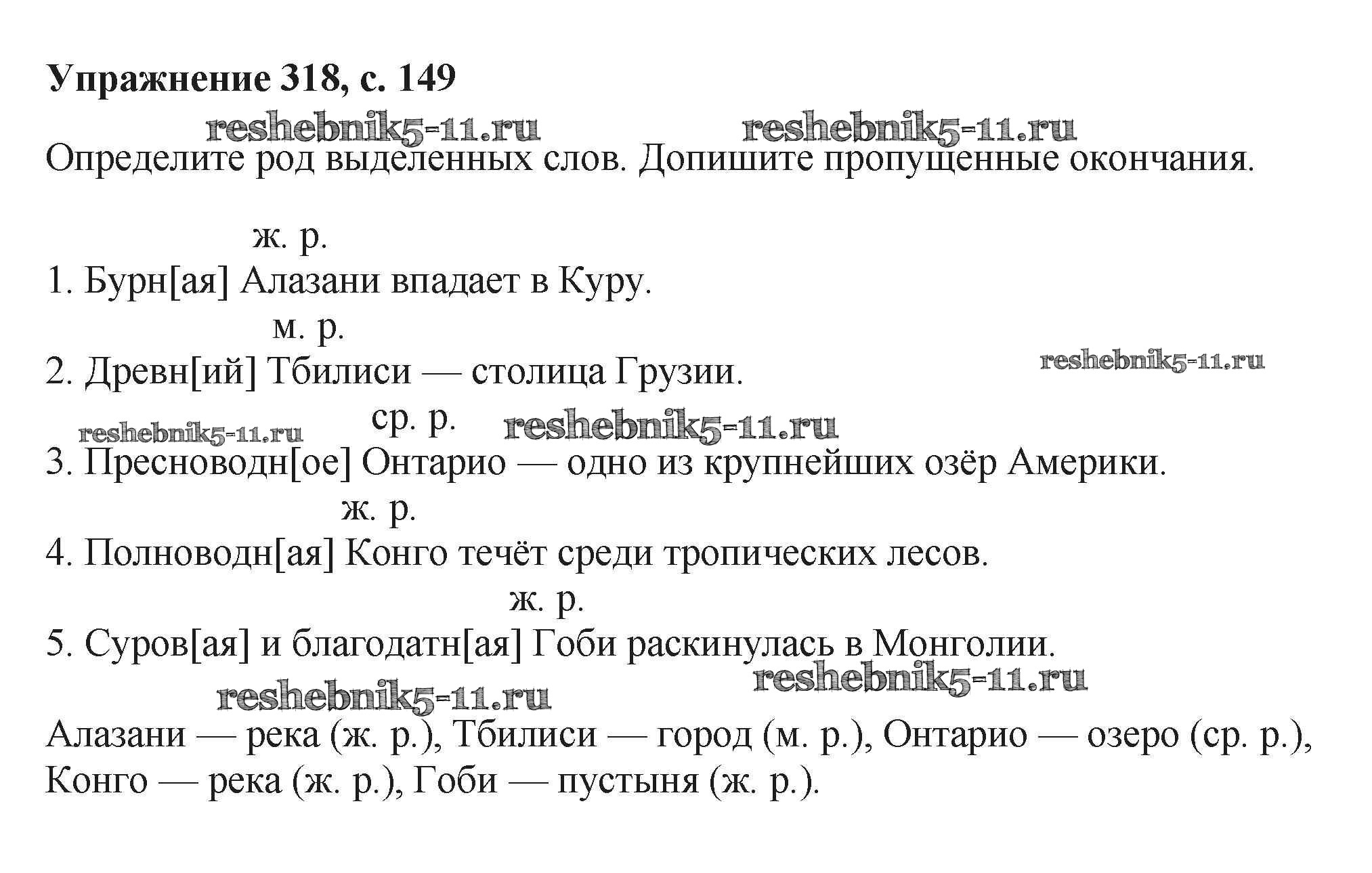 Готовая домашняя работа с ответами по Русскому языку за 6 класс Баранов, Ладыженская, Тростенцова, Григорян, Кулибаба Учебник Часть 1, 2 Просвещение 2015 ФГОС - Упражнения 318