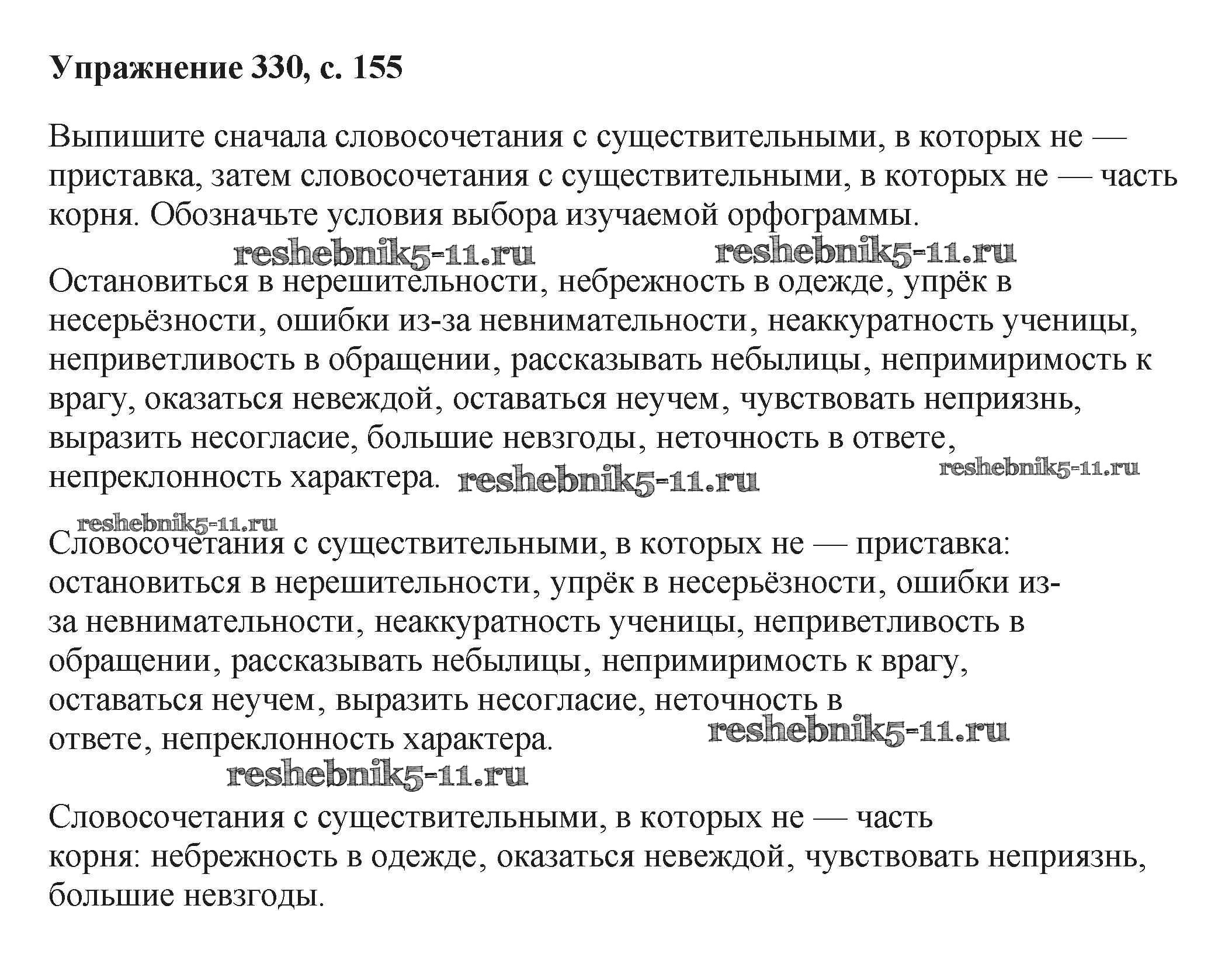 Готовая домашняя работа с ответами по Русскому языку за 6 класс Баранов, Ладыженская, Тростенцова, Григорян, Кулибаба Учебник Часть 1, 2 Просвещение 2015 ФГОС - Упражнения 330