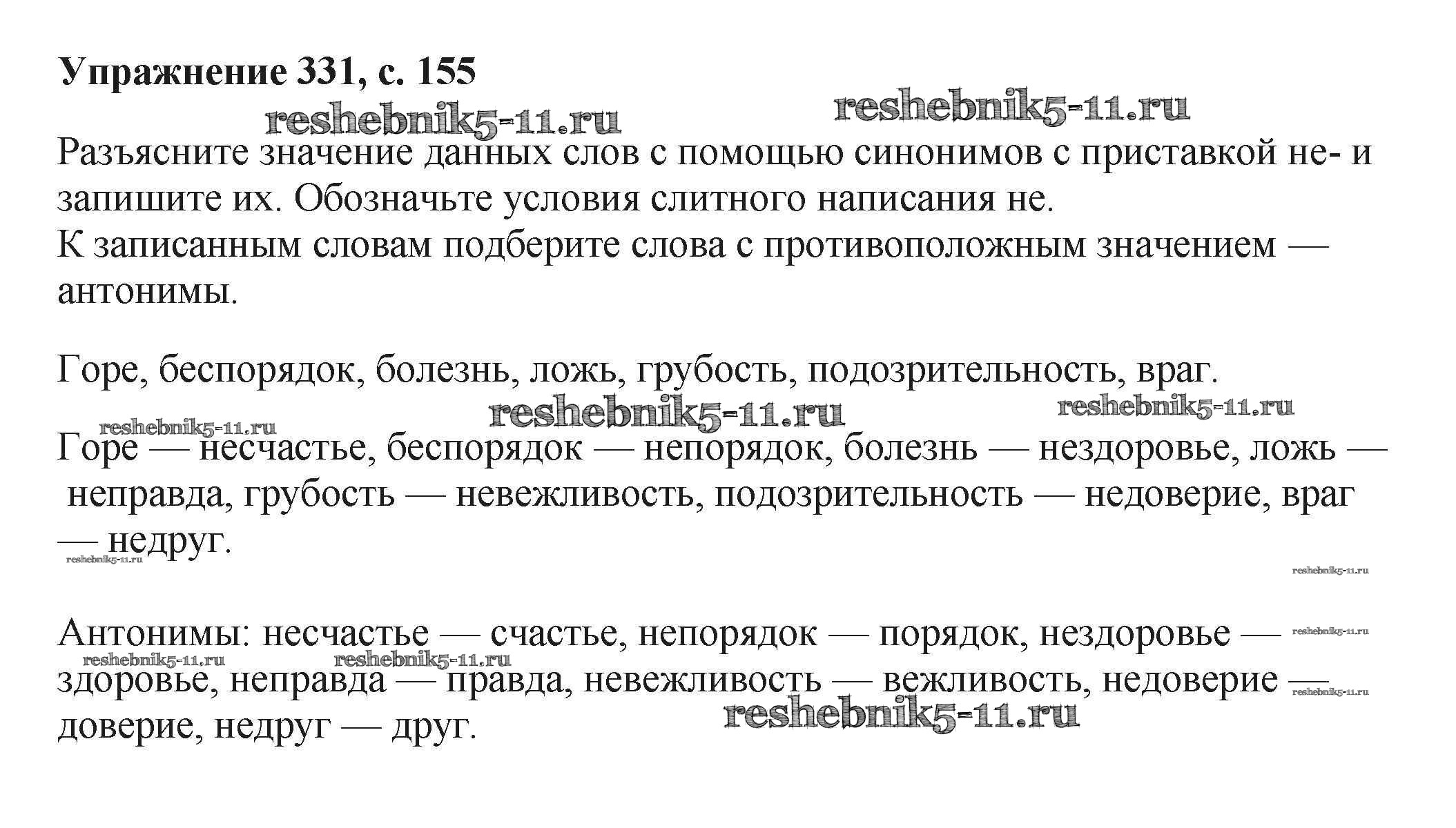 Готовая домашняя работа с ответами по Русскому языку за 6 класс Баранов, Ладыженская, Тростенцова, Григорян, Кулибаба Учебник Часть 1, 2 Просвещение 2015 ФГОС - Упражнения 331