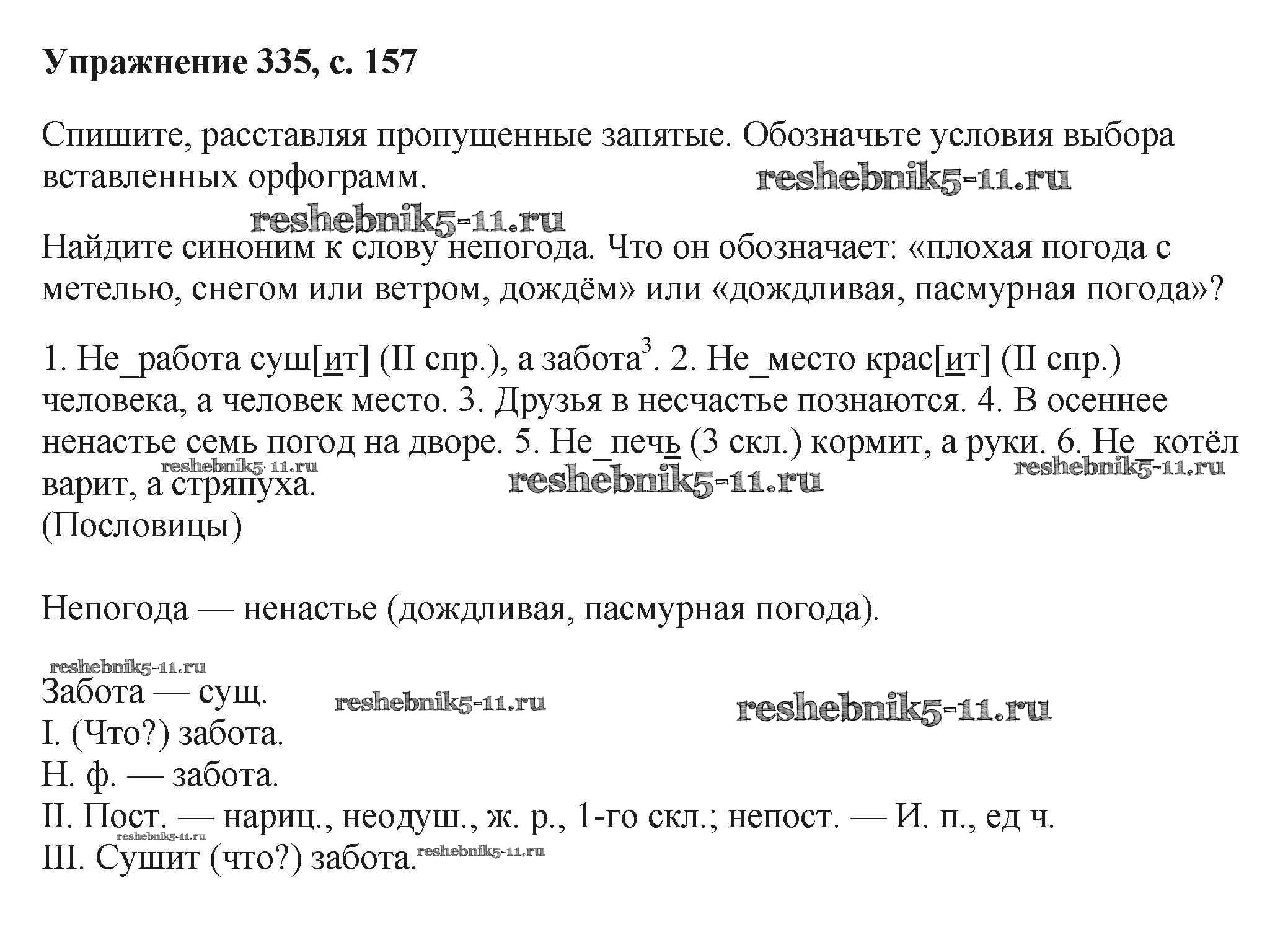 Готовая домашняя работа с ответами по Русскому языку за 6 класс Баранов, Ладыженская, Тростенцова, Григорян, Кулибаба Учебник Часть 1, 2 Просвещение 2015 ФГОС - Упражнения 335