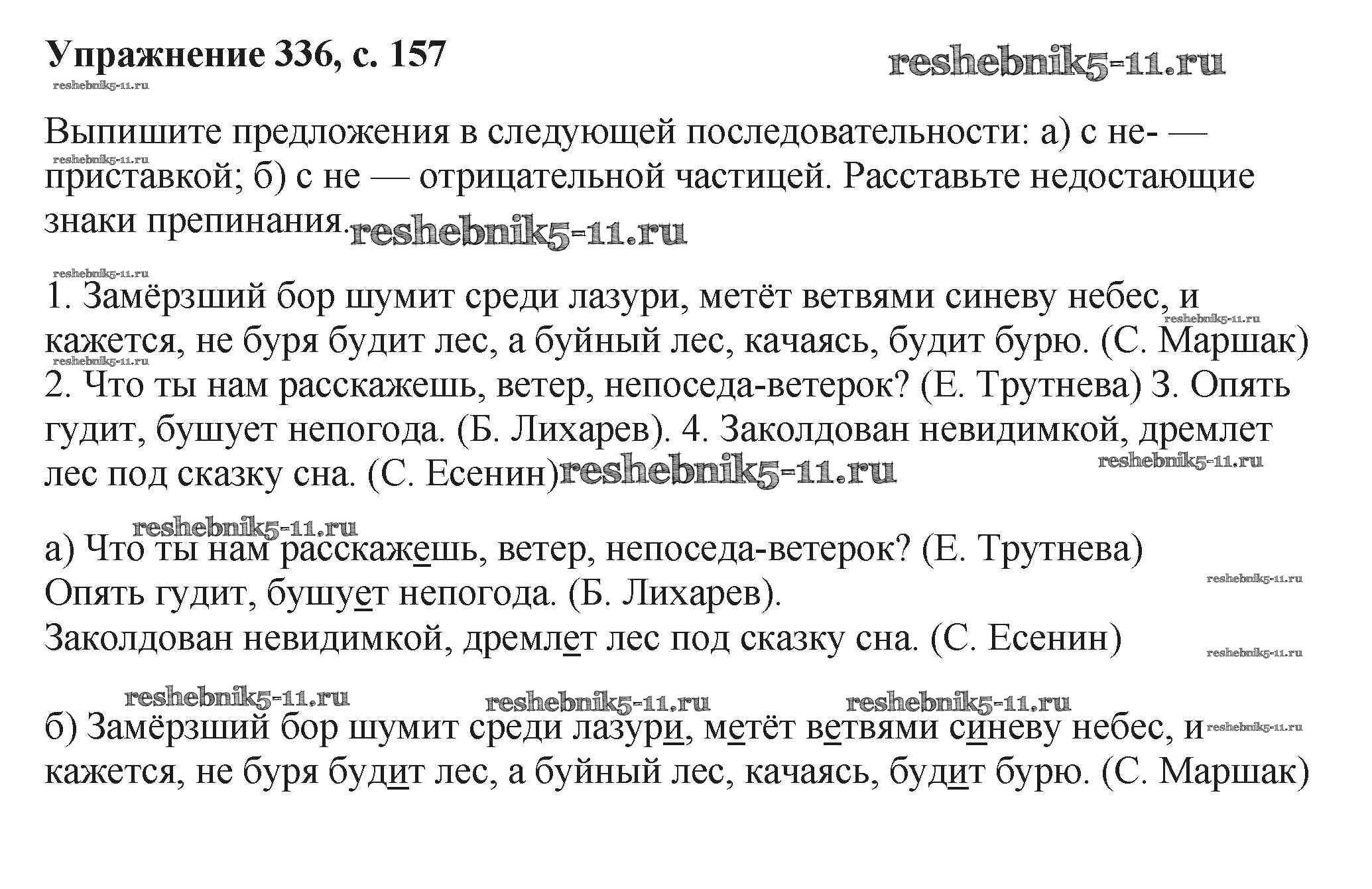 Готовая домашняя работа с ответами по Русскому языку за 6 класс Баранов, Ладыженская, Тростенцова, Григорян, Кулибаба Учебник Часть 1, 2 Просвещение 2015 ФГОС - Упражнения 336