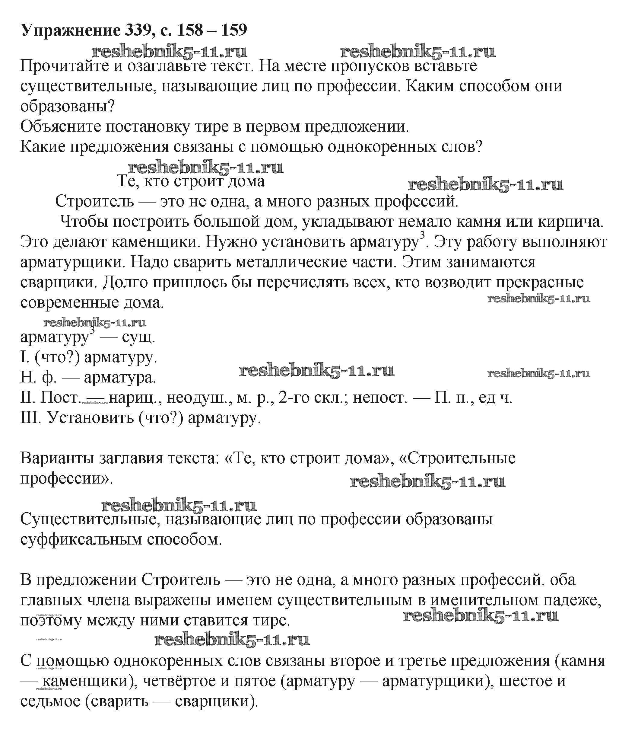 Готовая домашняя работа с ответами по Русскому языку за 6 класс Баранов, Ладыженская, Тростенцова, Григорян, Кулибаба Учебник Часть 1, 2 Просвещение 2015 ФГОС - Упражнения 339