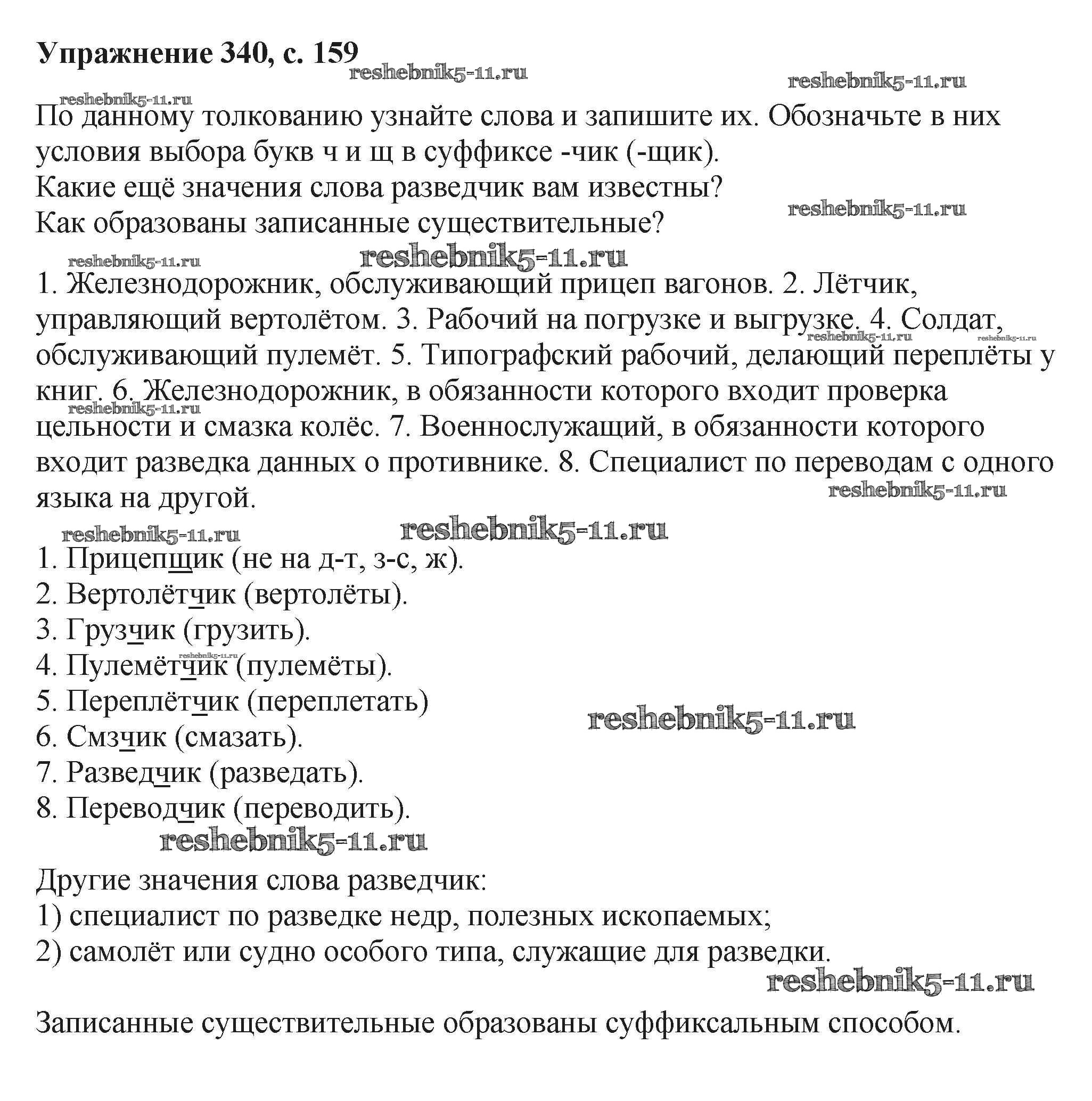 Готовая домашняя работа с ответами по Русскому языку за 6 класс Баранов, Ладыженская, Тростенцова, Григорян, Кулибаба Учебник Часть 1, 2 Просвещение 2015 ФГОС - Упражнения 340