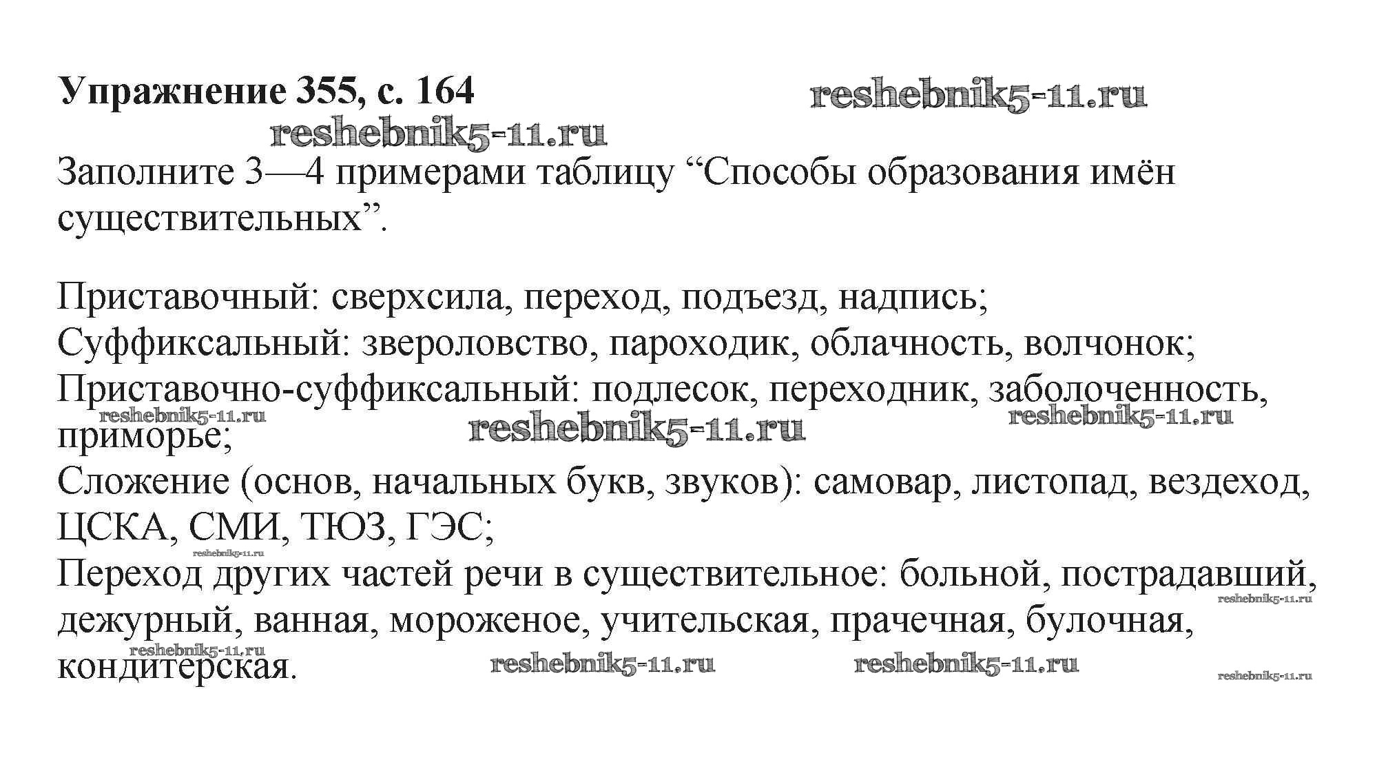 Готовая домашняя работа с ответами по Русскому языку за 6 класс Баранов, Ладыженская, Тростенцова, Григорян, Кулибаба Учебник Часть 1, 2 Просвещение 2015 ФГОС - Упражнения 355