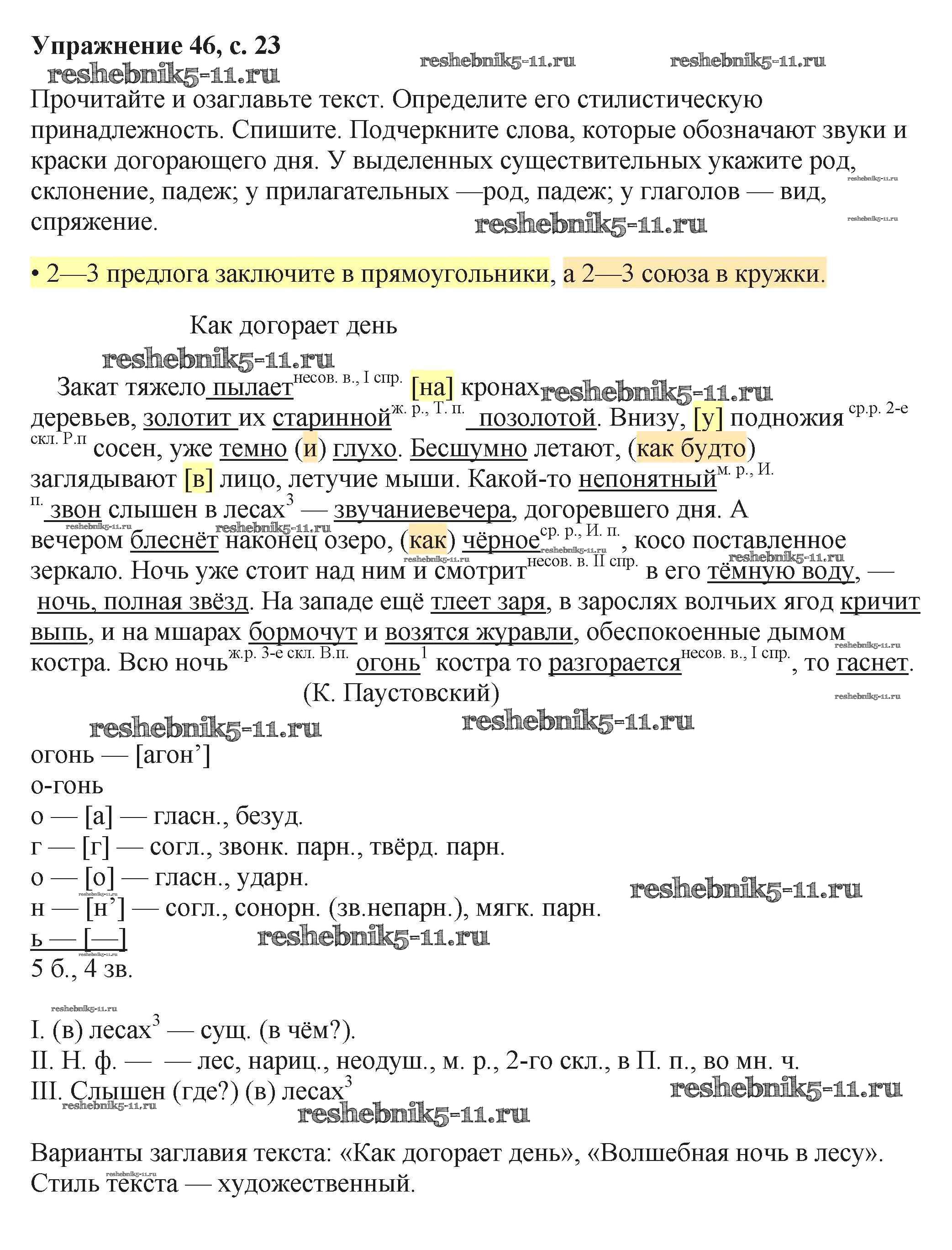 Готовая домашняя работа с ответами по Русскому языку за 6 класс Баранов, Ладыженская, Тростенцова, Григорян, Кулибаба Учебник Часть 1, 2 Просвещение 2015 ФГОС - Упражнения 46