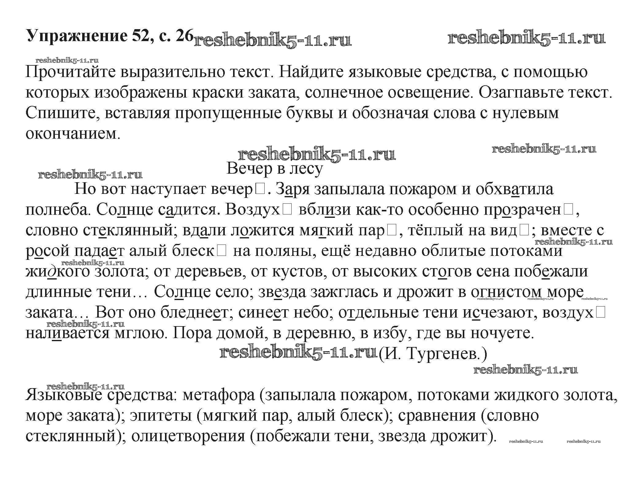 Готовая домашняя работа с ответами по Русскому языку за 6 класс Баранов, Ладыженская, Тростенцова, Григорян, Кулибаба Учебник Часть 1, 2 Просвещение 2015 ФГОС - Упражнения 52