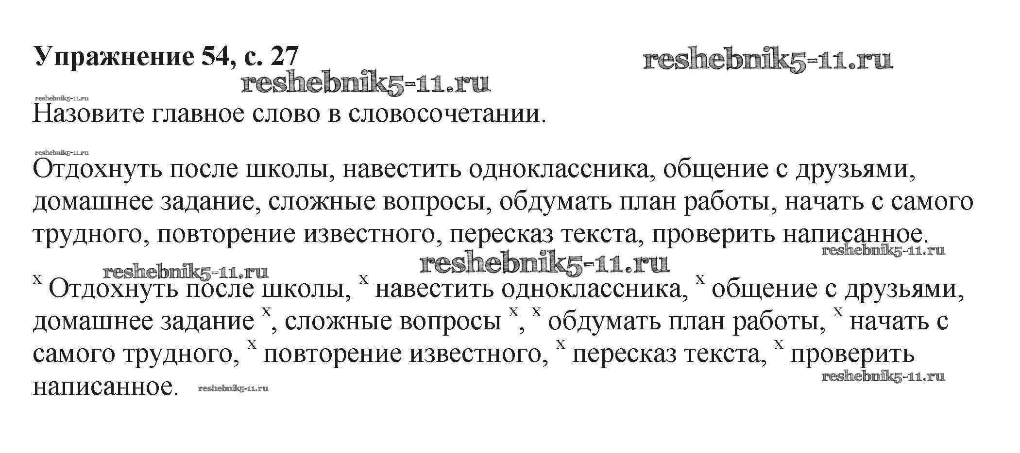 Готовая домашняя работа с ответами по Русскому языку за 6 класс Баранов, Ладыженская, Тростенцова, Григорян, Кулибаба Учебник Часть 1, 2 Просвещение 2015 ФГОС - Упражнения 54