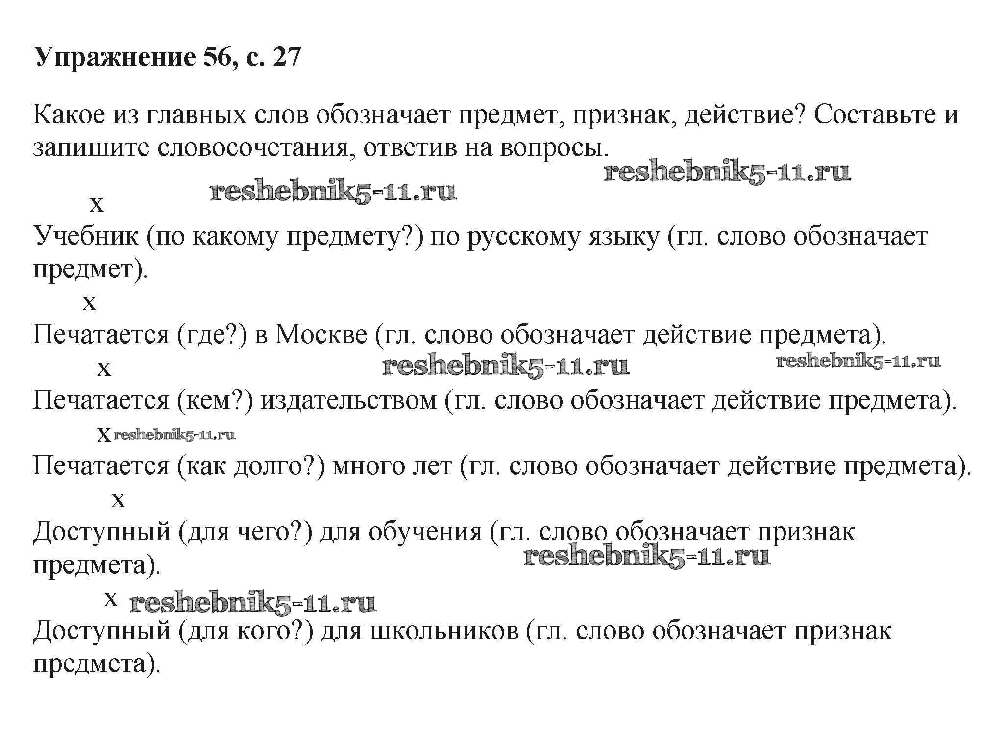 Готовая домашняя работа с ответами по Русскому языку за 6 класс Баранов, Ладыженская, Тростенцова, Григорян, Кулибаба Учебник Часть 1, 2 Просвещение 2015 ФГОС - Упражнения 56