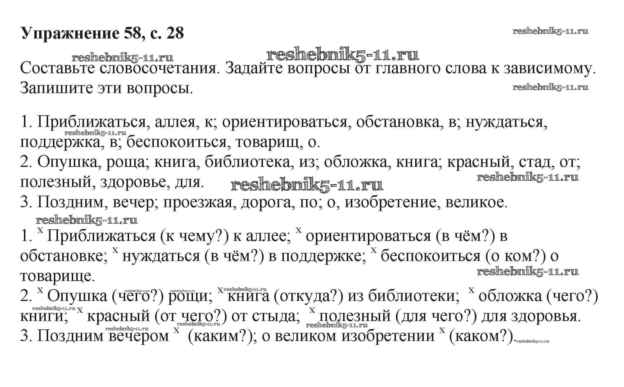 Готовая домашняя работа с ответами по Русскому языку за 6 класс Баранов, Ладыженская, Тростенцова, Григорян, Кулибаба Учебник Часть 1, 2 Просвещение 2015 ФГОС - Упражнения 58