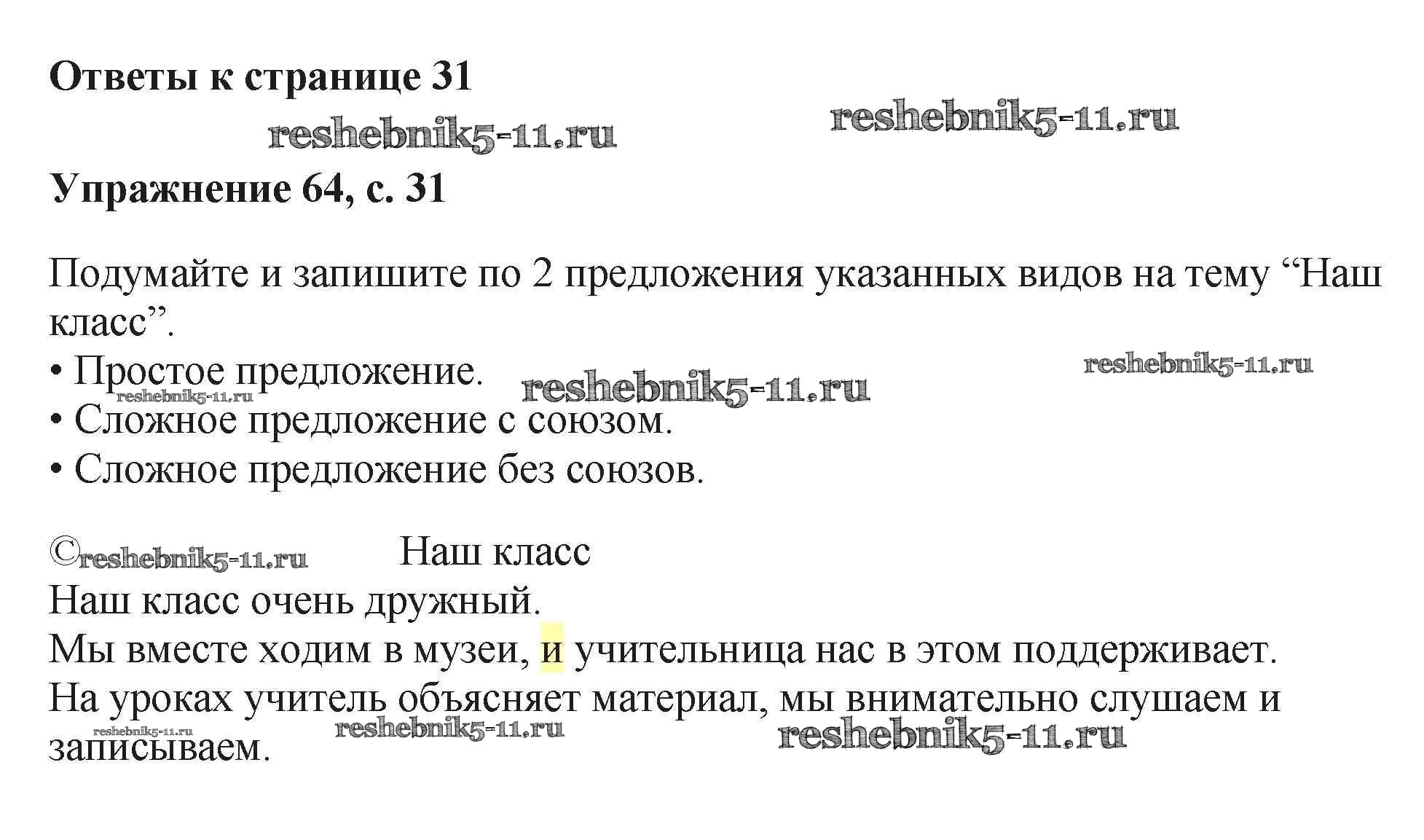 Русский язык за 6 класс Баранов Учебник Просвещение упражнение 64