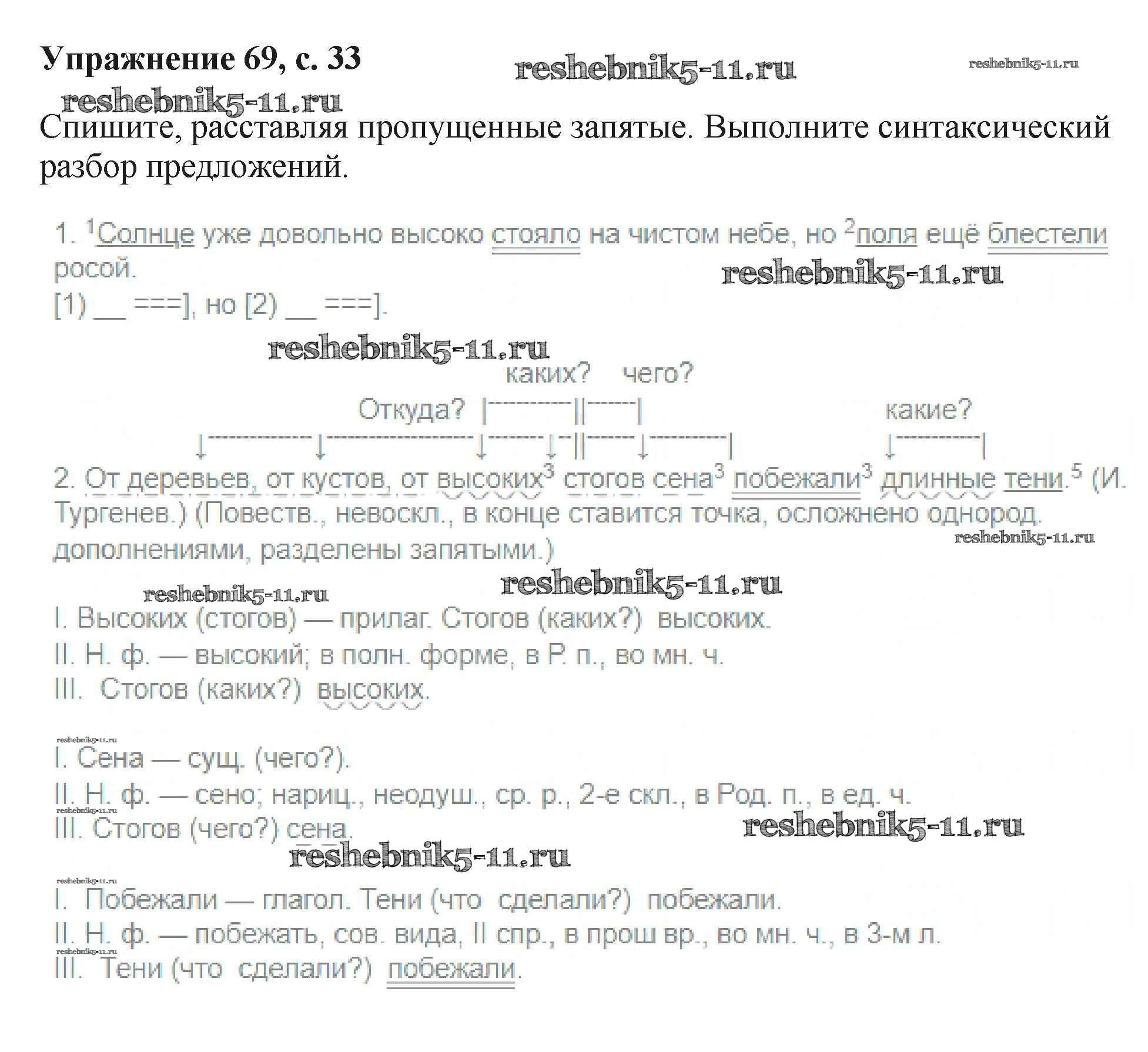 Готовая домашняя работа с ответами по Русскому языку за 6 класс Баранов, Ладыженская, Тростенцова, Григорян, Кулибаба Учебник Часть 1, 2 Просвещение 2015 ФГОС - Упражнения 69