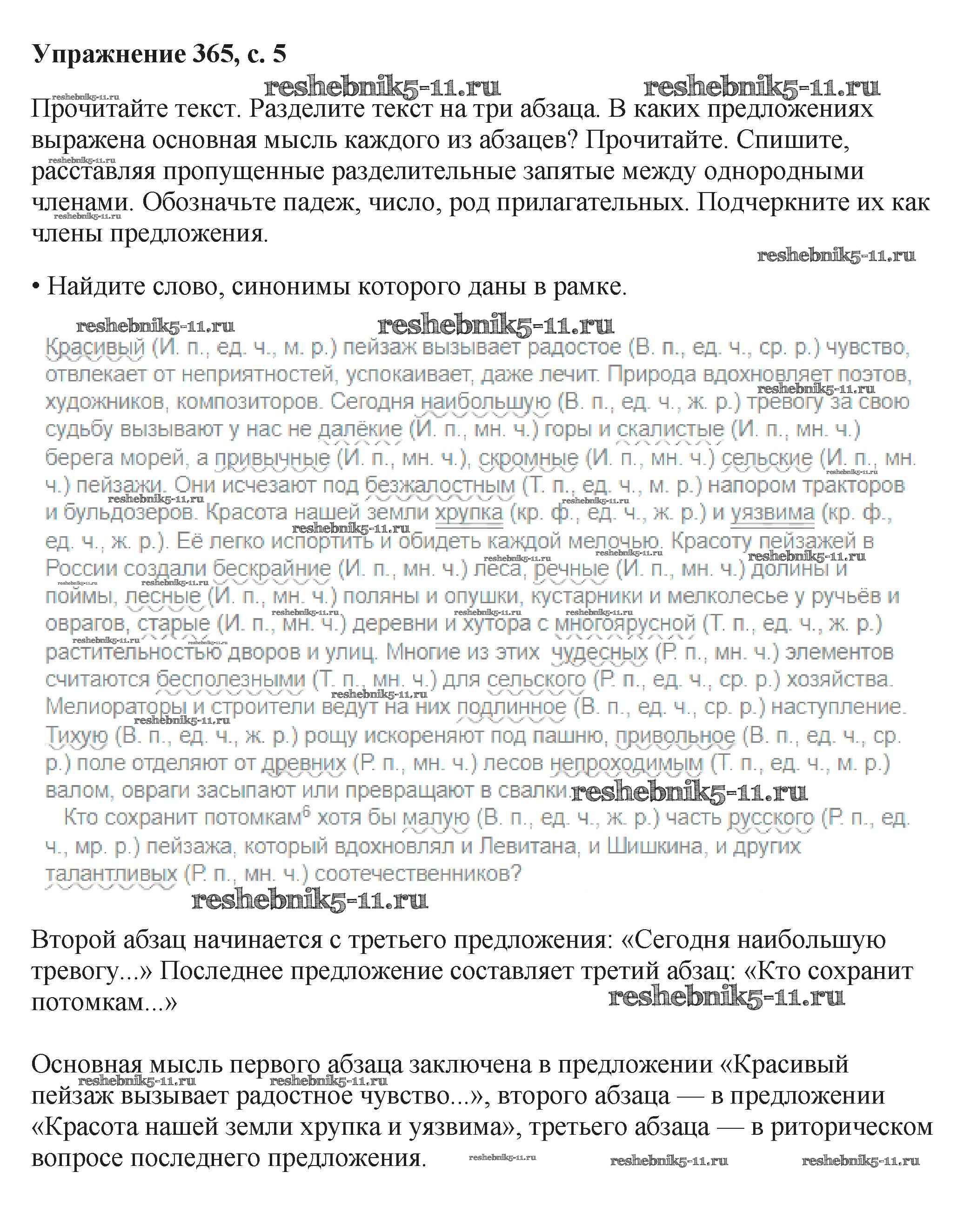 Готовая домашняя работа с ответами по Русскому языку за 6 класс Баранов, Ладыженская, Тростенцова, Григорян, Кулибаба Учебник Часть 1, 2 Просвещение 2015 ФГОС - Упражнения 365