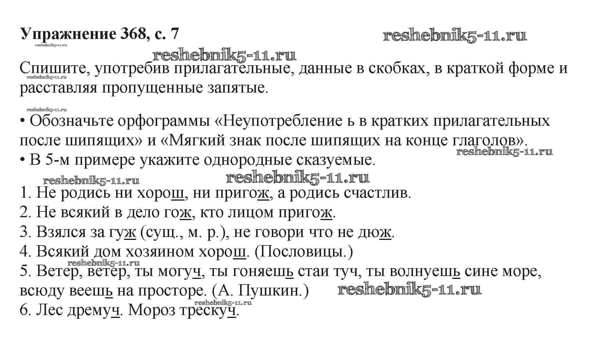 Готовая домашняя работа с ответами по Русскому языку за 6 класс Баранов, Ладыженская, Тростенцова, Григорян, Кулибаба Учебник Часть 1, 2 Просвещение 2015 ФГОС - Упражнения 368