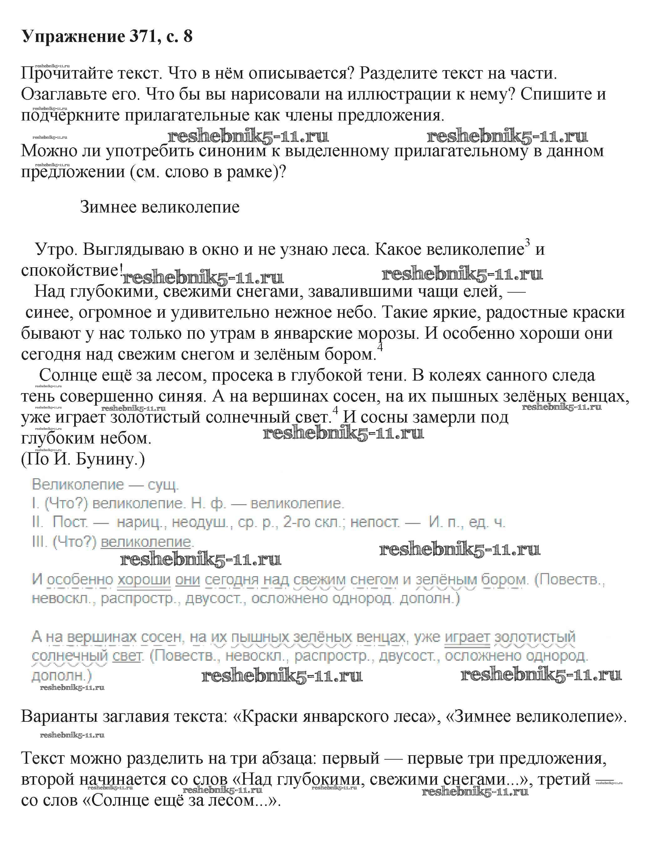 Готовая домашняя работа с ответами по Русскому языку за 6 класс Баранов, Ладыженская, Тростенцова, Григорян, Кулибаба Учебник Часть 1, 2 Просвещение 2015 ФГОС - Упражнения 371
