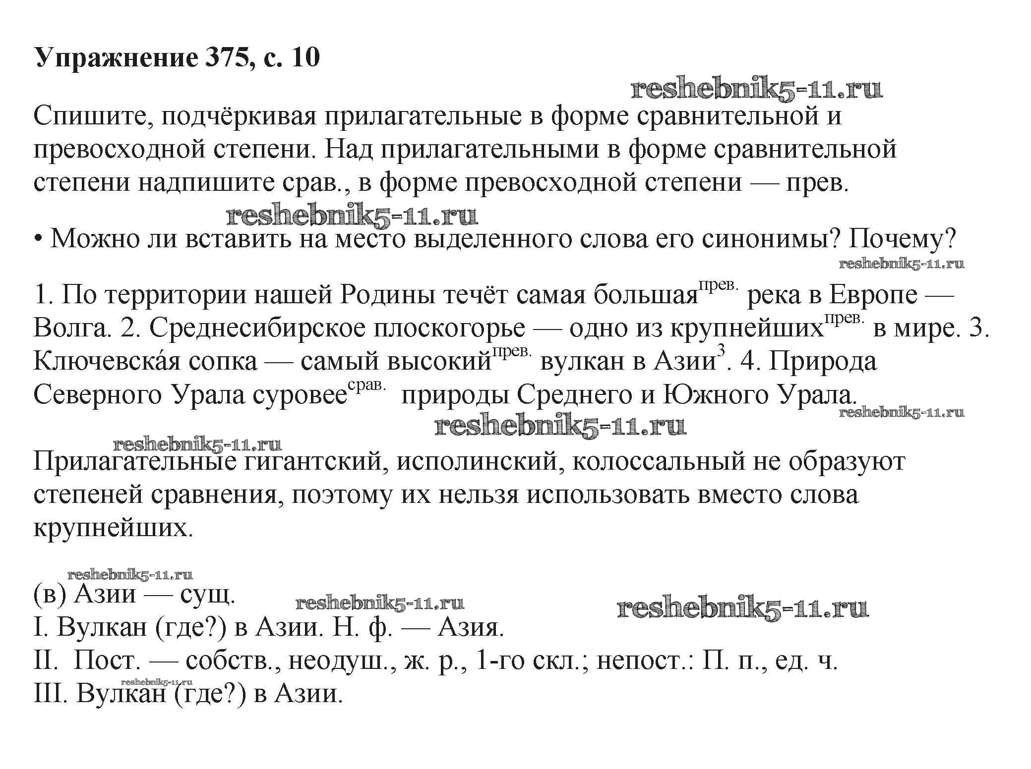 Готовая домашняя работа с ответами по Русскому языку за 6 класс Баранов, Ладыженская, Тростенцова, Григорян, Кулибаба Учебник Часть 1, 2 Просвещение 2015 ФГОС - Упражнения 375