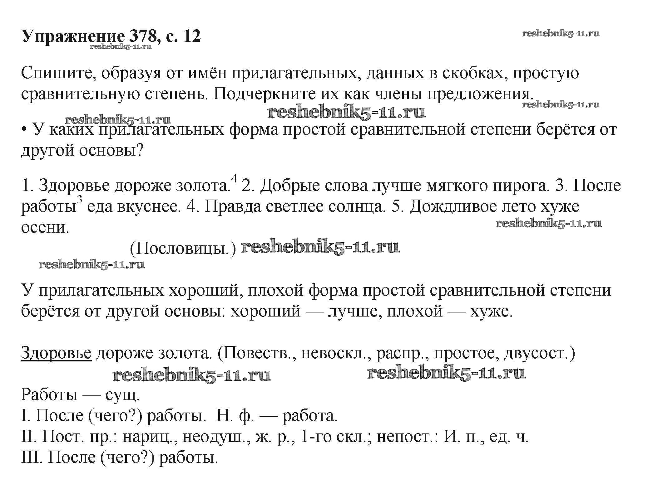 Готовая домашняя работа с ответами по Русскому языку за 6 класс Баранов, Ладыженская, Тростенцова, Григорян, Кулибаба Учебник Часть 1, 2 Просвещение 2015 ФГОС - Упражнения 378