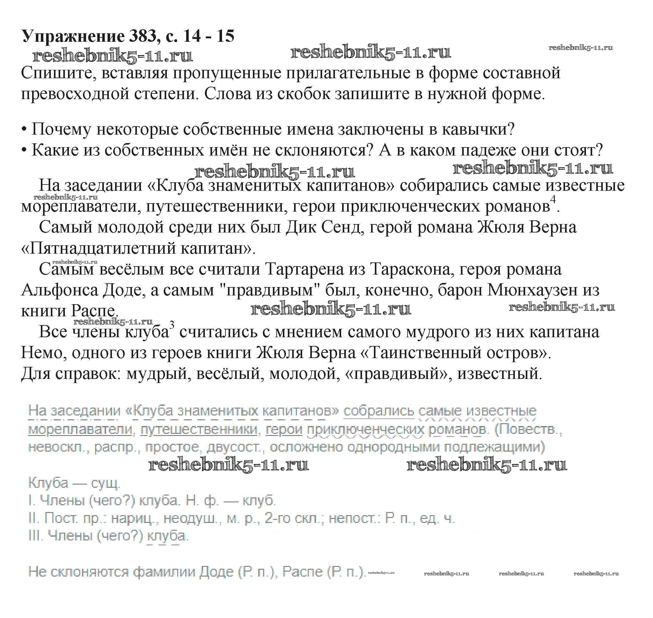 Готовая домашняя работа с ответами по Русскому языку за 6 класс Баранов, Ладыженская, Тростенцова, Григорян, Кулибаба Учебник Часть 1, 2 Просвещение 2015 ФГОС - Упражнения 383