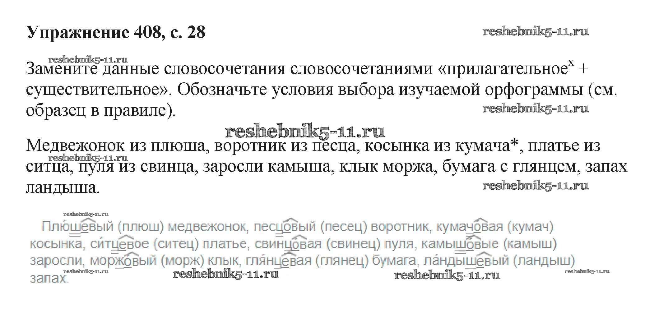 Готовая домашняя работа с ответами по Русскому языку за 6 класс Баранов, Ладыженская, Тростенцова, Григорян, Кулибаба Учебник Часть 1, 2 Просвещение 2015 ФГОС - Упражнения 408
