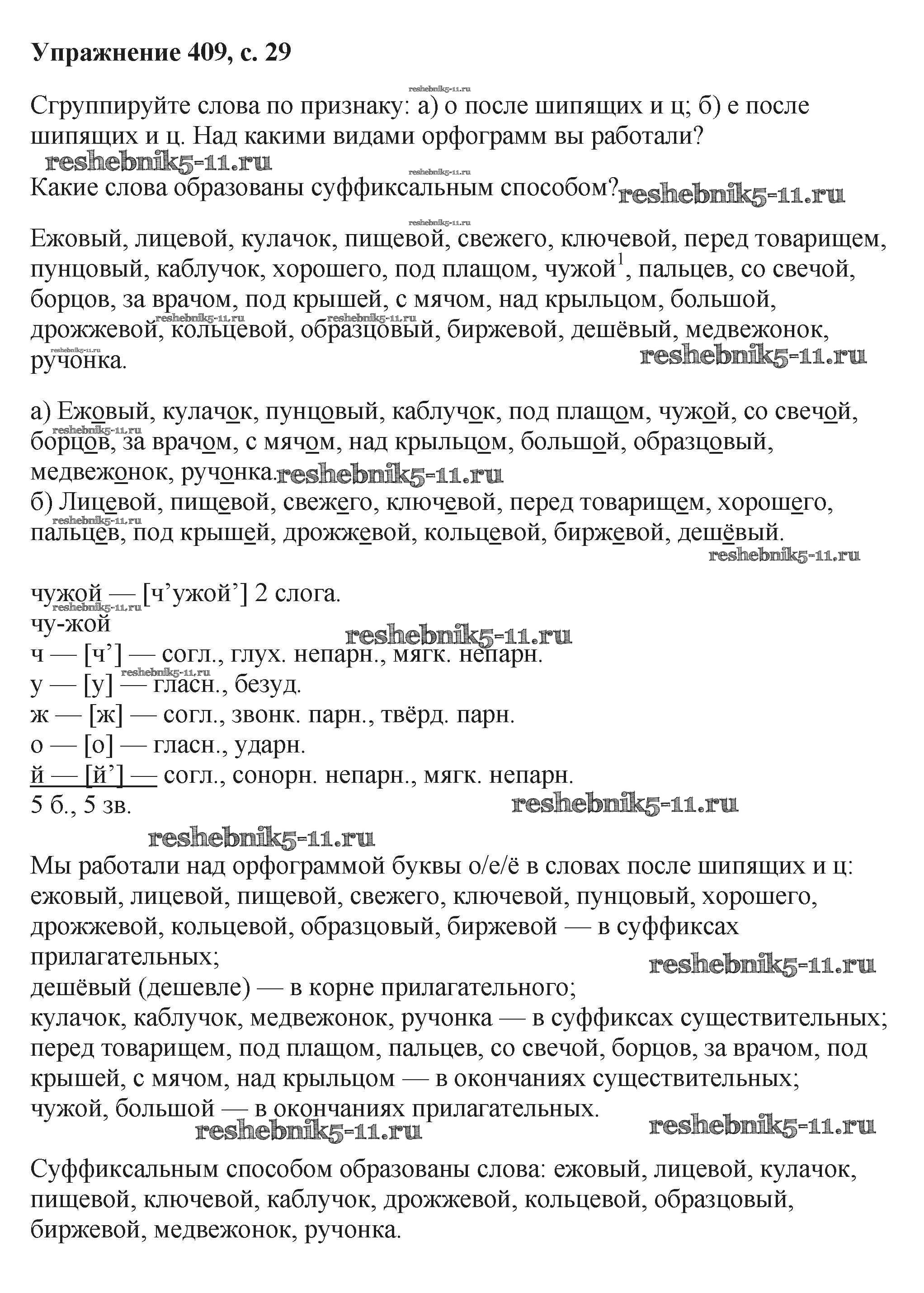 Готовая домашняя работа с ответами по Русскому языку за 6 класс Баранов, Ладыженская, Тростенцова, Григорян, Кулибаба Учебник Часть 1, 2 Просвещение 2015 ФГОС - Упражнения 409