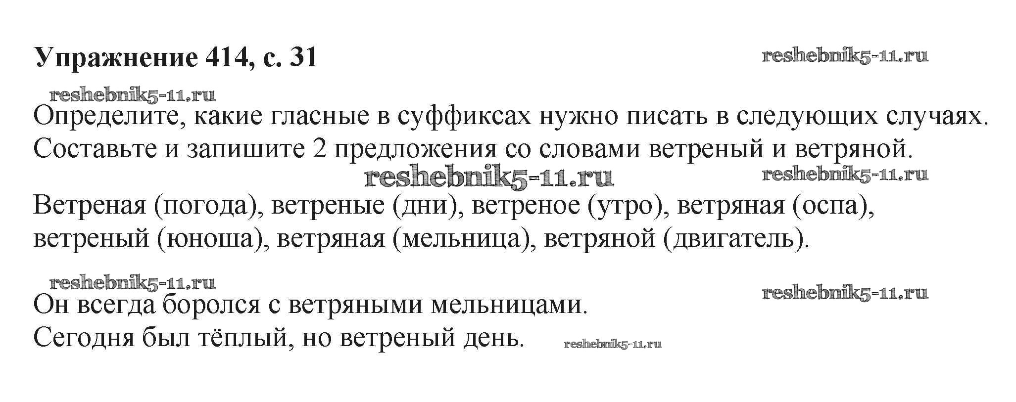 Готовая домашняя работа с ответами по Русскому языку за 6 класс Баранов, Ладыженская, Тростенцова, Григорян, Кулибаба Учебник Часть 1, 2 Просвещение 2015 ФГОС - Упражнения 414