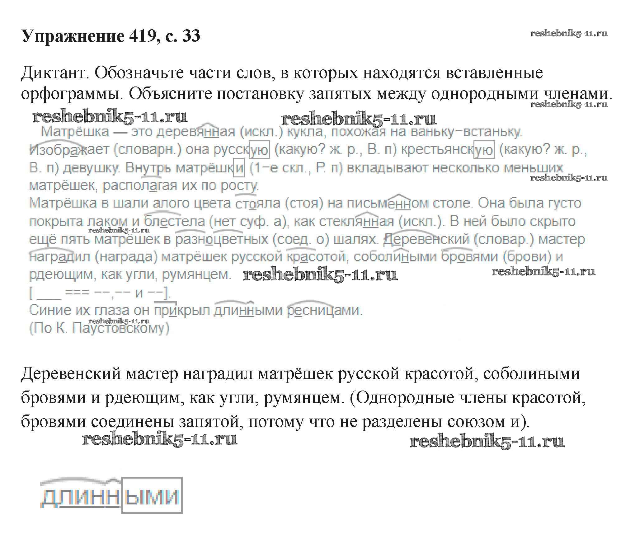 Готовая домашняя работа с ответами по Русскому языку за 6 класс Баранов, Ладыженская, Тростенцова, Григорян, Кулибаба Учебник Часть 1, 2 Просвещение 2015 ФГОС - Упражнения 419