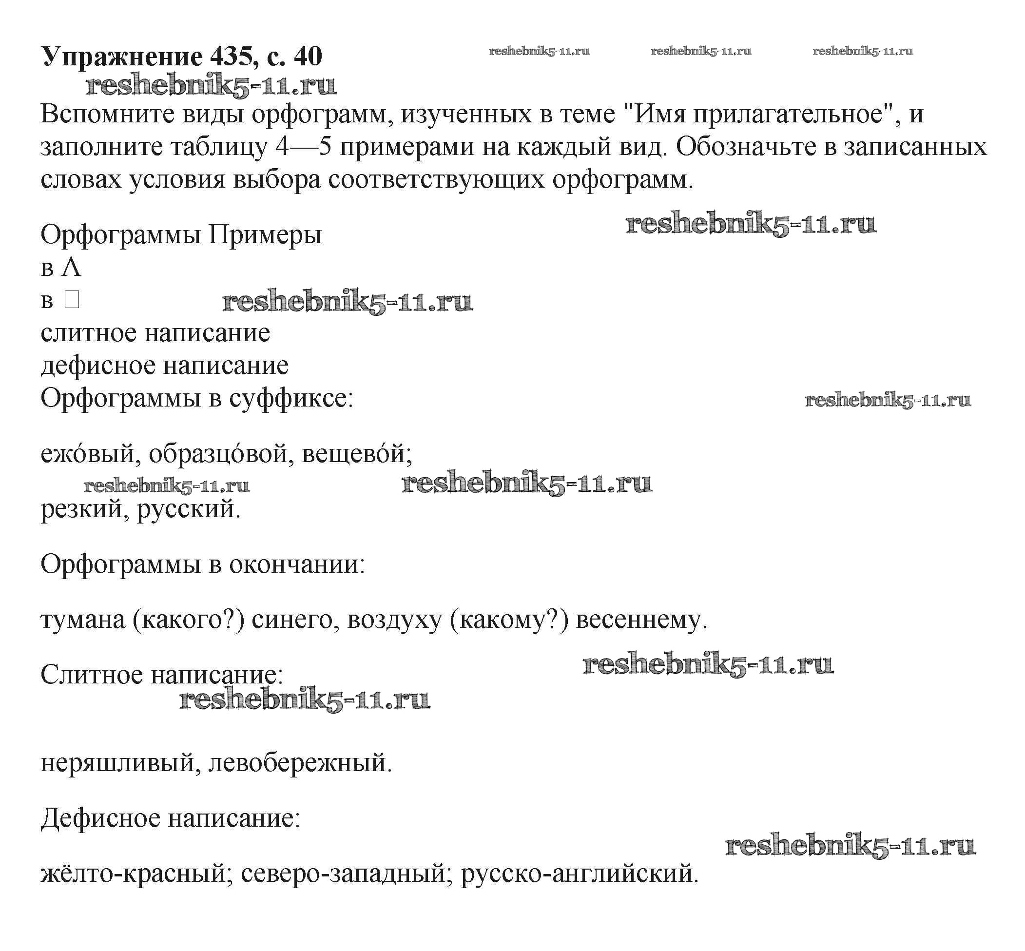 Готовая домашняя работа с ответами по Русскому языку за 6 класс Баранов, Ладыженская, Тростенцова, Григорян, Кулибаба Учебник Часть 1, 2 Просвещение 2015 ФГОС - Упражнения 435