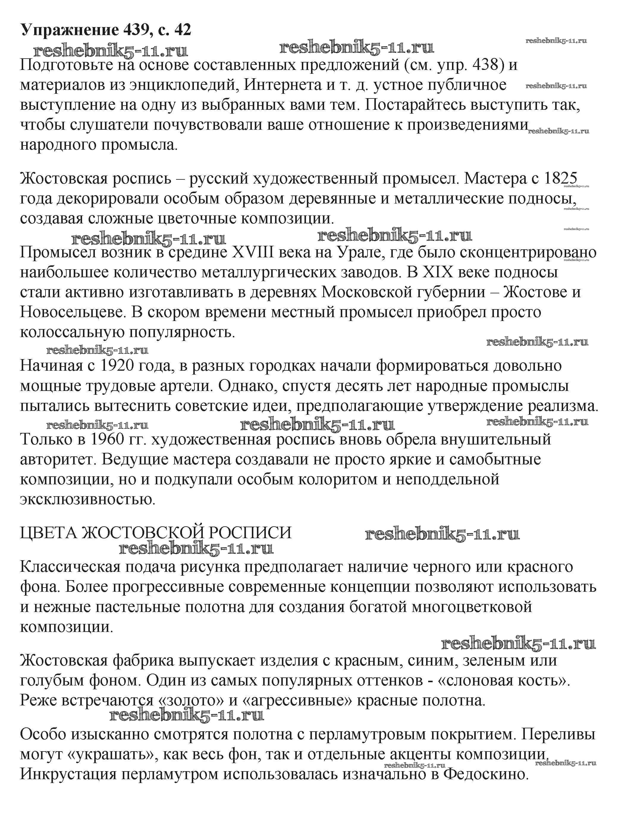 Русский язык за 6 класс Баранов Учебник Просвещение упражнение 439