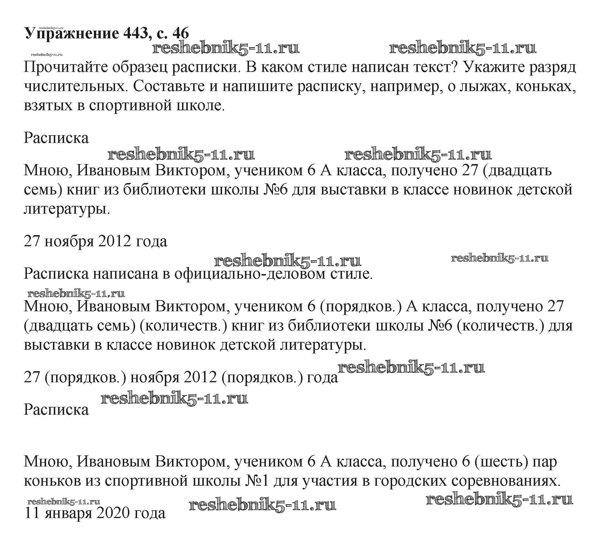Русский язык за 6 класс Баранов Учебник Просвещение упражнение 443