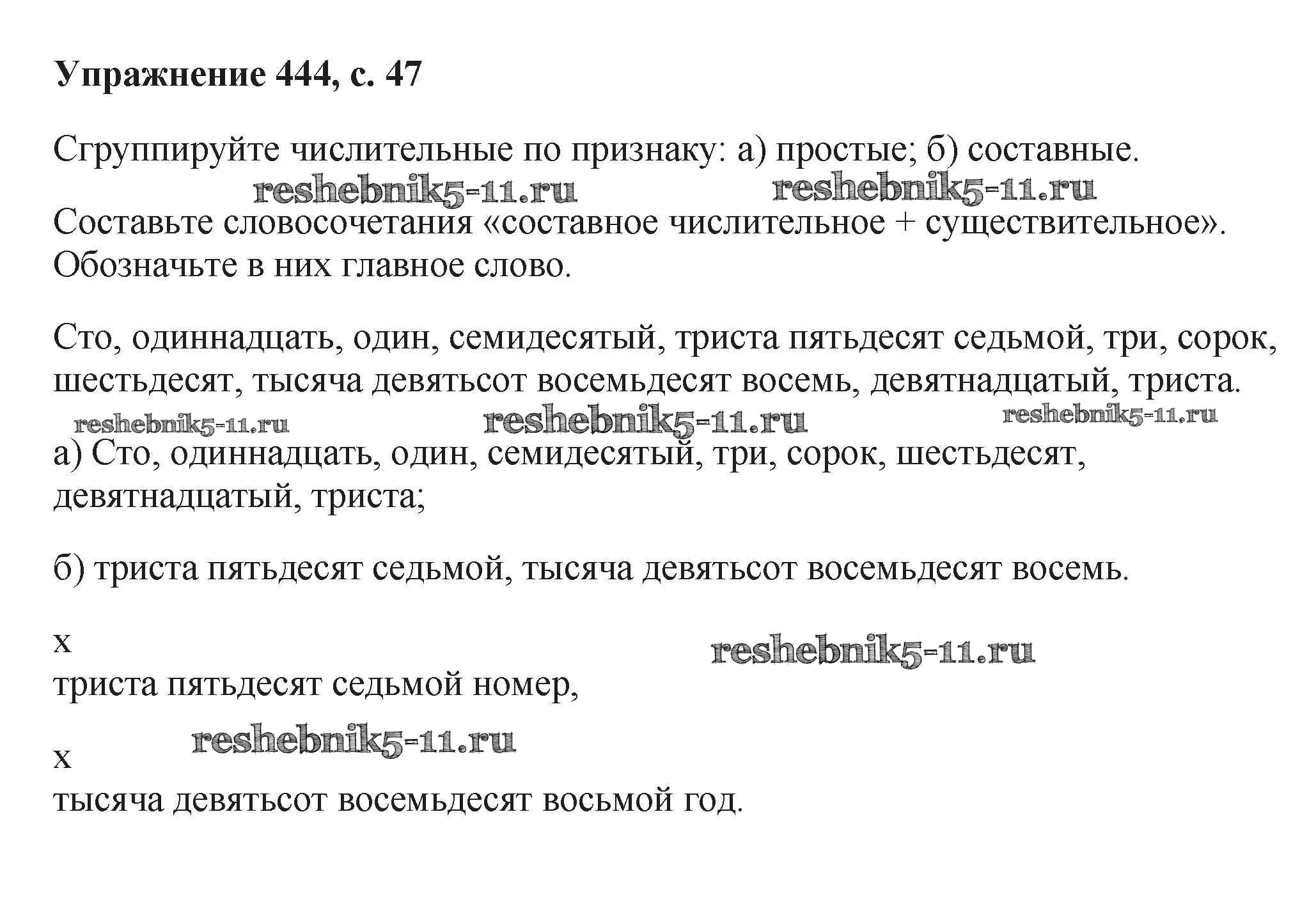Готовая домашняя работа с ответами по Русскому языку за 6 класс Баранов, Ладыженская, Тростенцова, Григорян, Кулибаба Учебник Часть 1, 2 Просвещение 2015 ФГОС - Упражнения 444