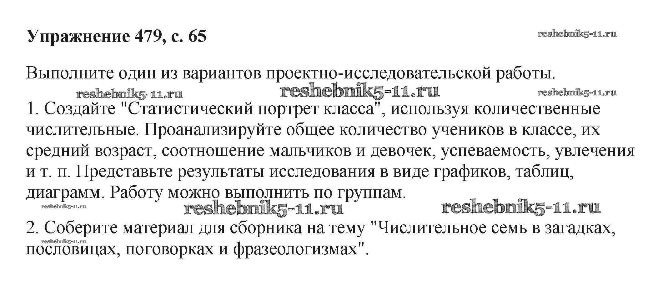 Русский язык за 6 класс Баранов Учебник Просвещение упражнение 479