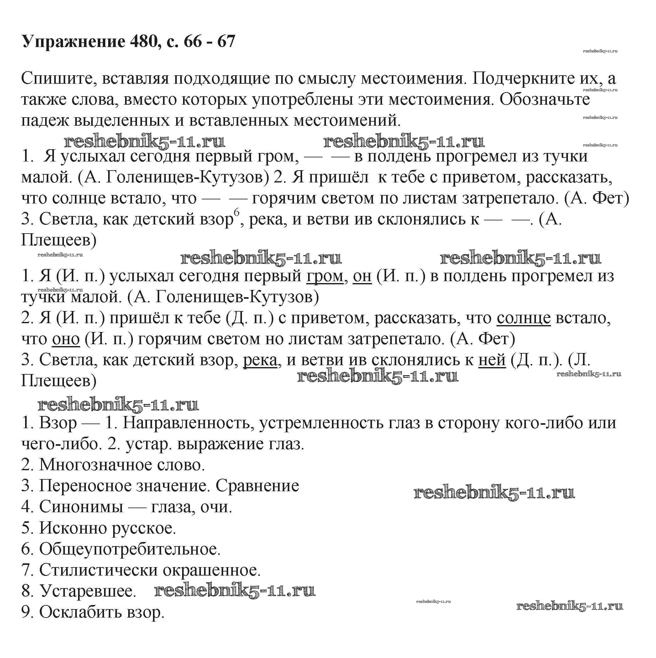 Русский язык за 6 класс Баранов Учебник Просвещение упражнение 480