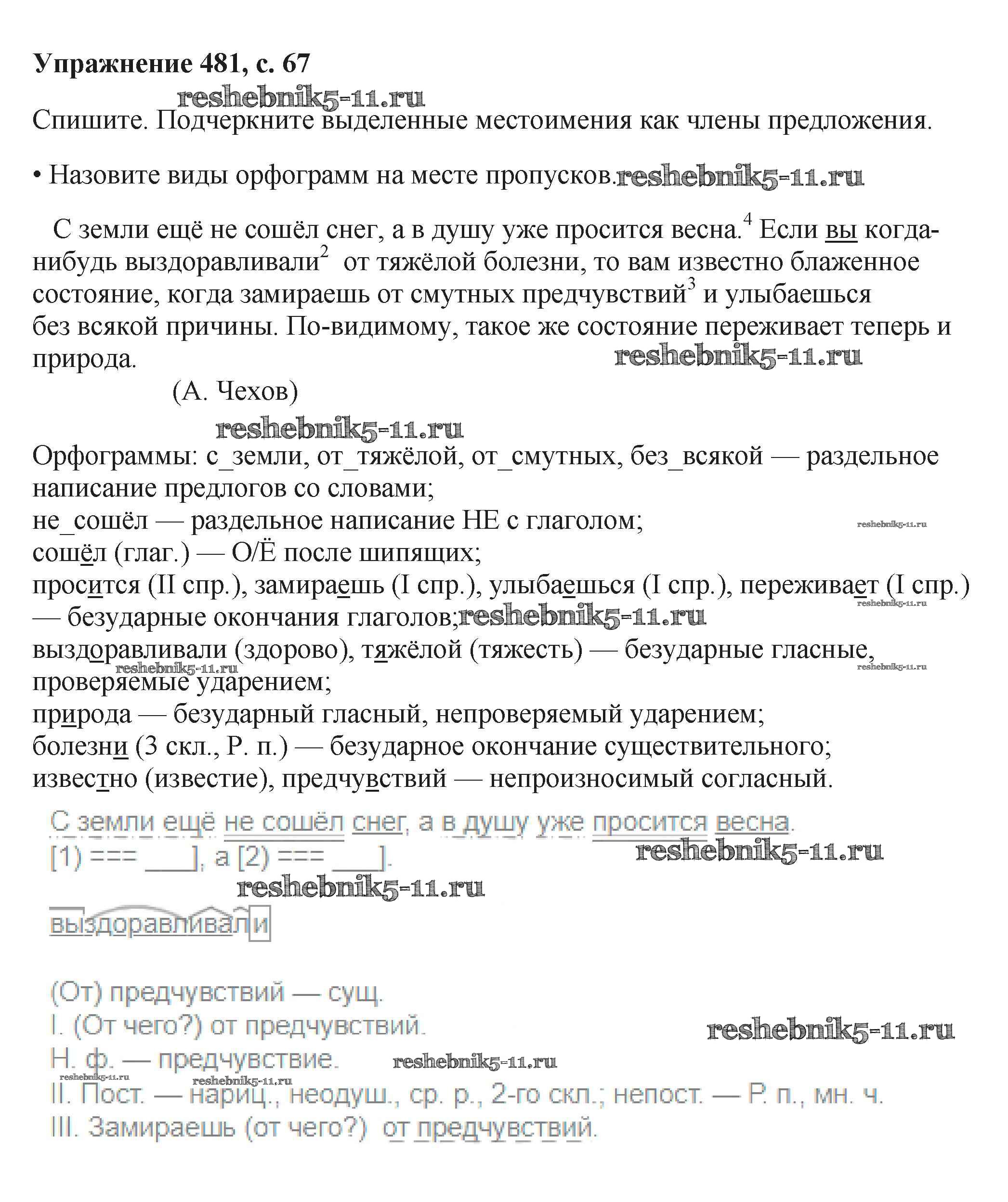 Готовая домашняя работа с ответами по Русскому языку за 6 класс Баранов, Ладыженская, Тростенцова, Григорян, Кулибаба Учебник Часть 1, 2 Просвещение 2015 ФГОС - Упражнения 481