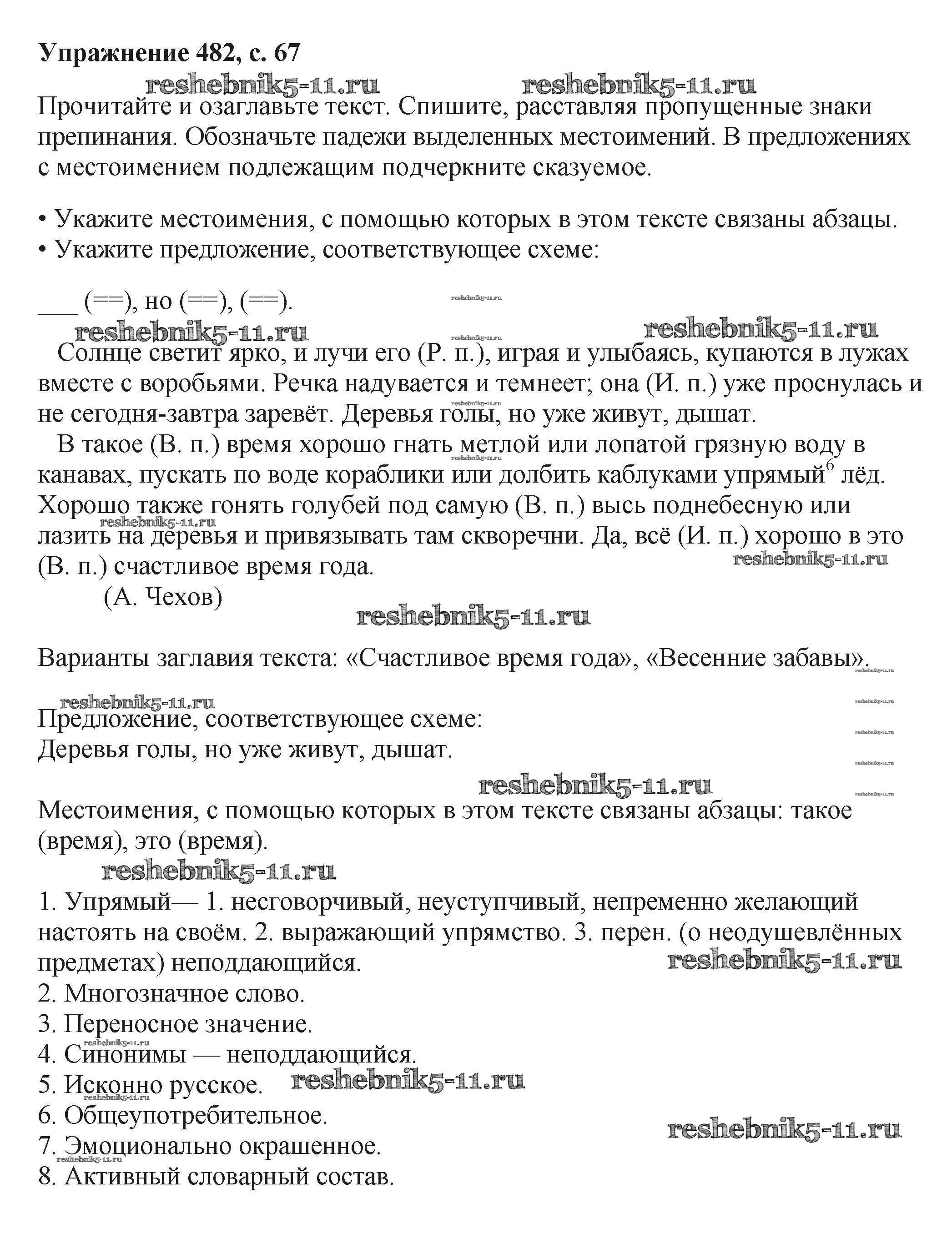 Русский язык за 6 класс Баранов Учебник Просвещение упражнение 482