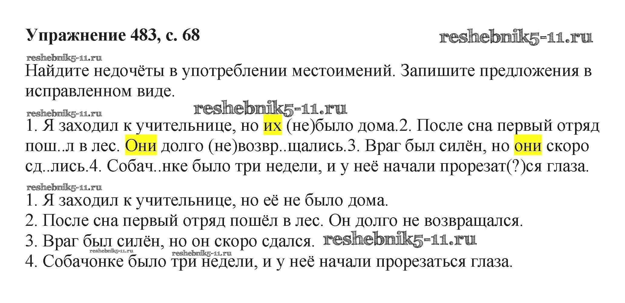 Русский язык за 6 класс Баранов Учебник Просвещение упражнение 483