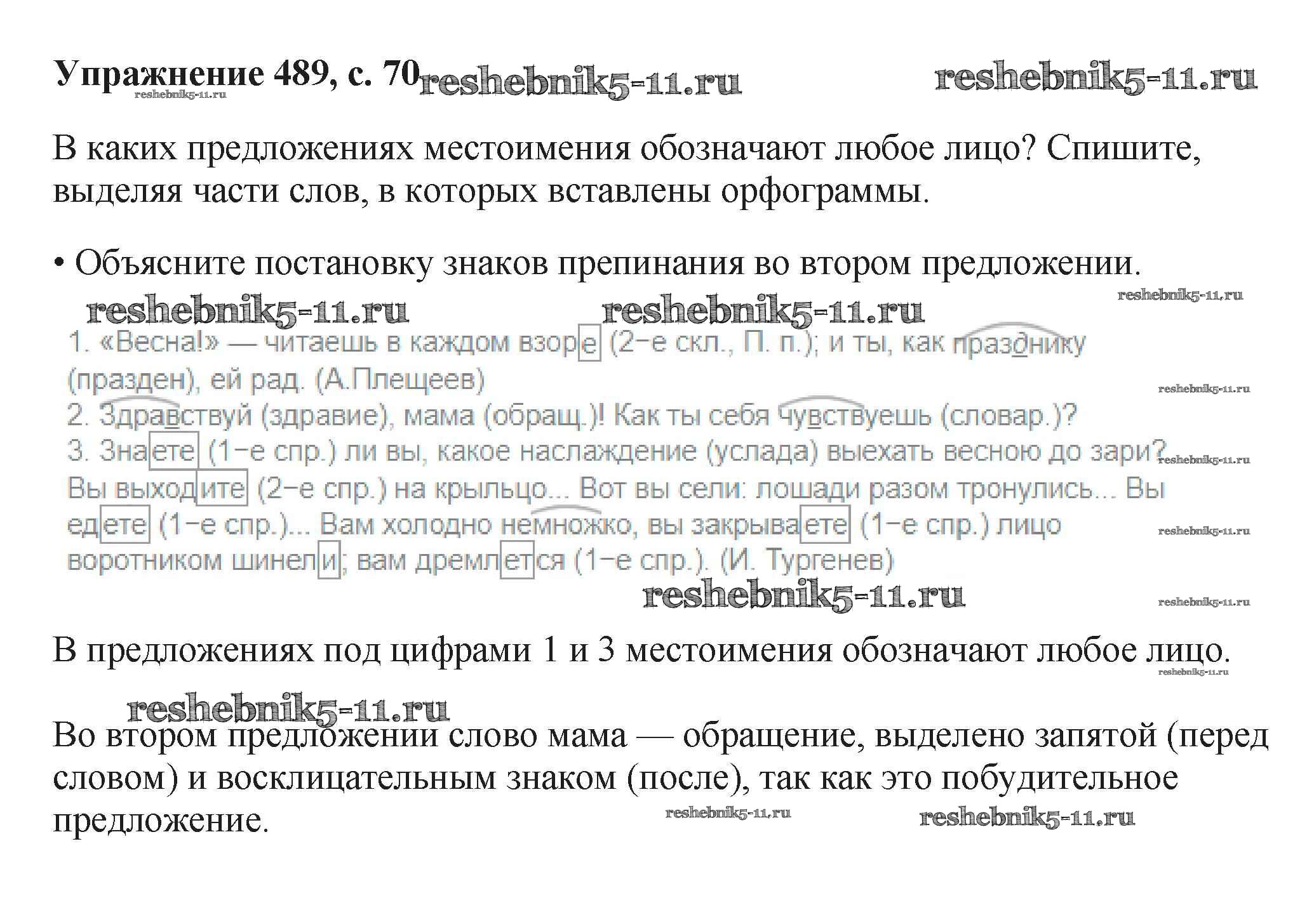 Готовая домашняя работа с ответами по Русскому языку за 6 класс Баранов, Ладыженская, Тростенцова, Григорян, Кулибаба Учебник Часть 1, 2 Просвещение 2015 ФГОС - Упражнения 489