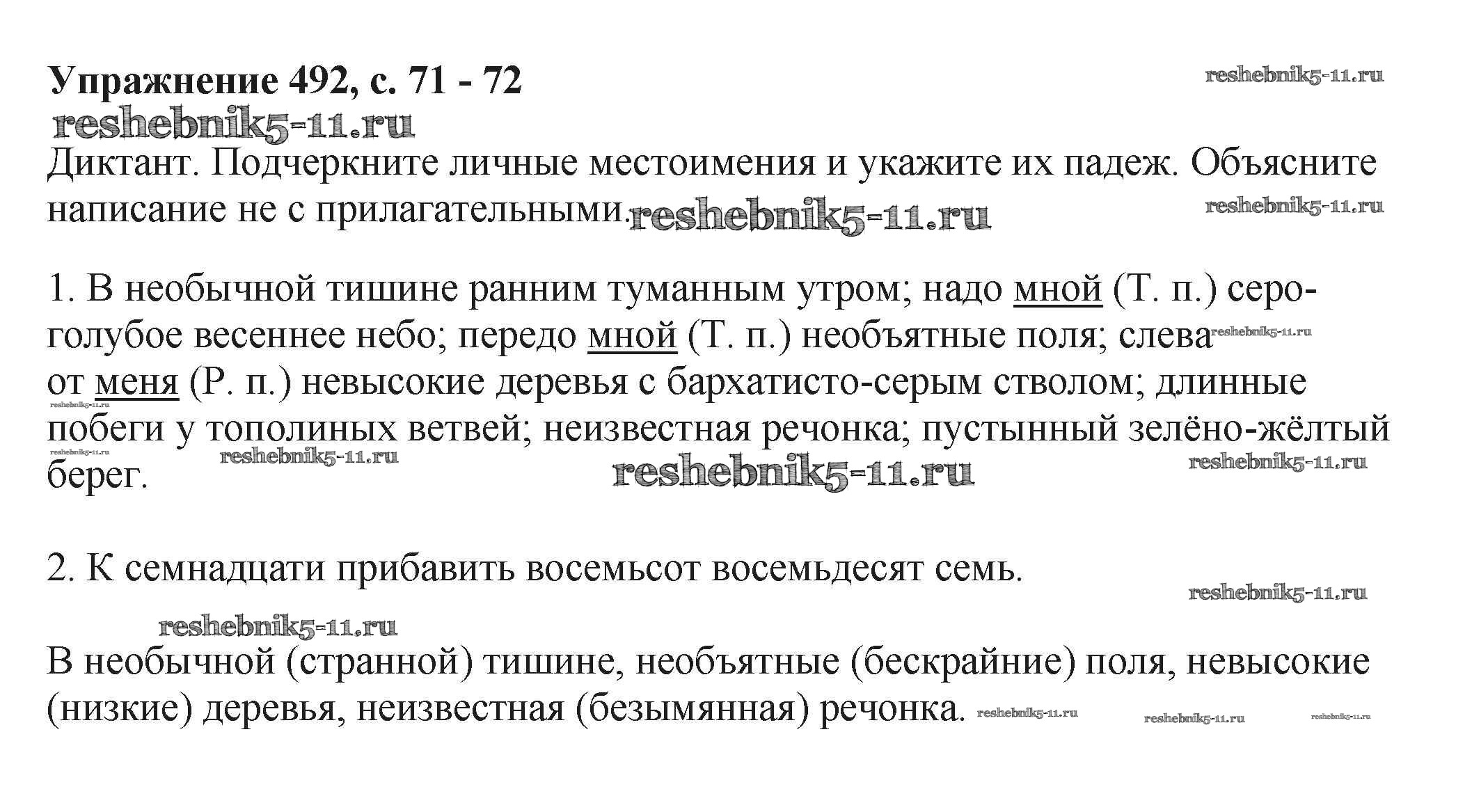 Готовая домашняя работа с ответами по Русскому языку за 6 класс Баранов, Ладыженская, Тростенцова, Григорян, Кулибаба Учебник Часть 1, 2 Просвещение 2015 ФГОС - Упражнения 492