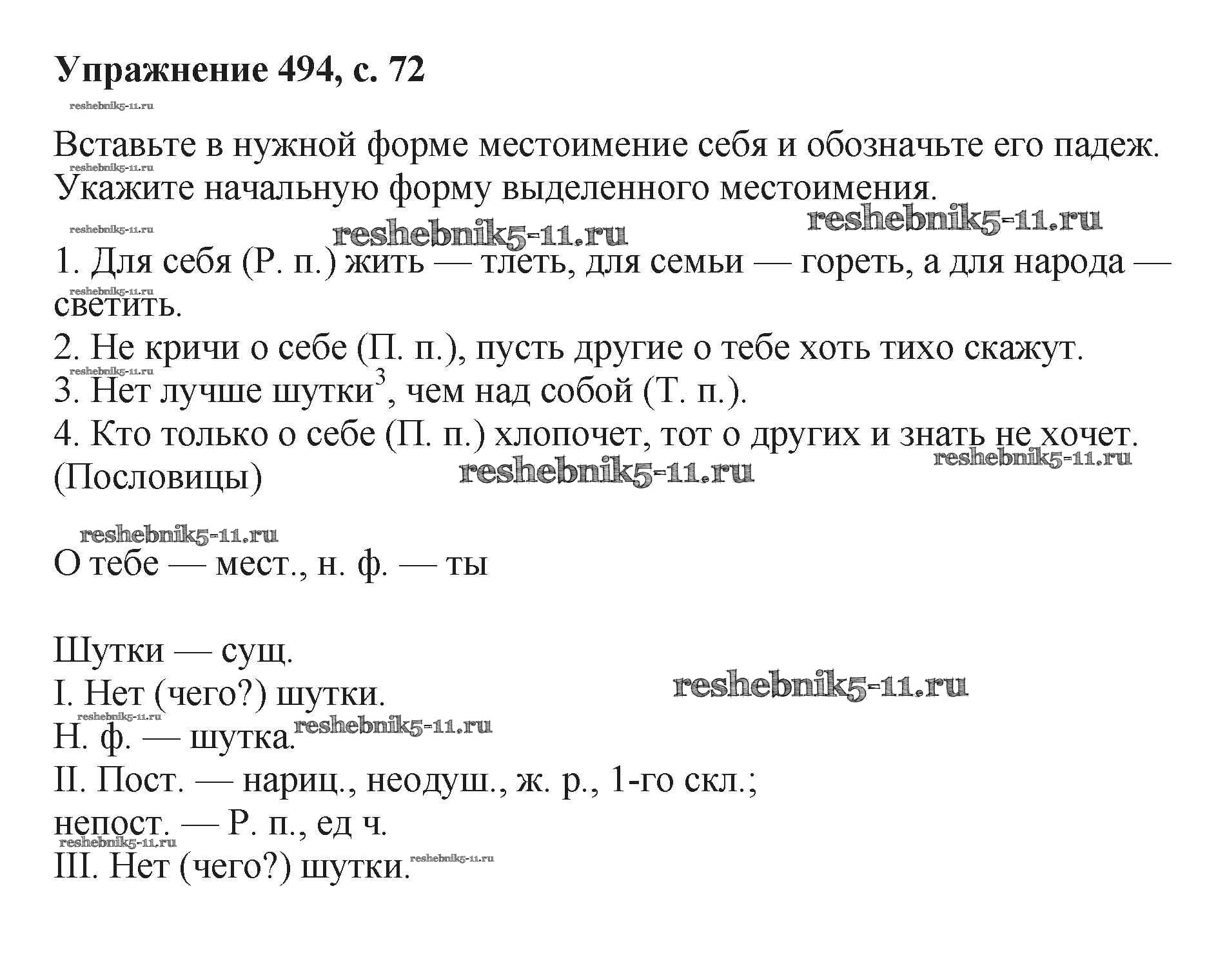 Готовая домашняя работа с ответами по Русскому языку за 6 класс Баранов, Ладыженская, Тростенцова, Григорян, Кулибаба Учебник Часть 1, 2 Просвещение 2015 ФГОС - Упражнения 494